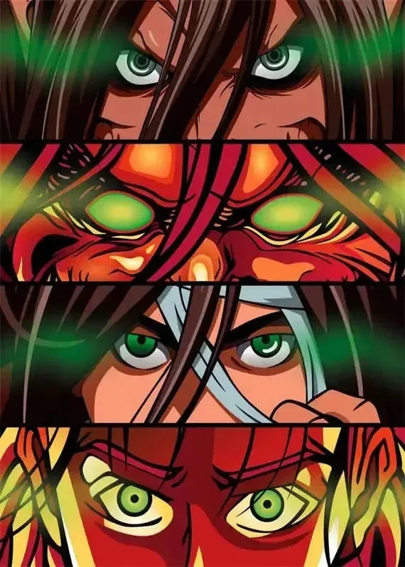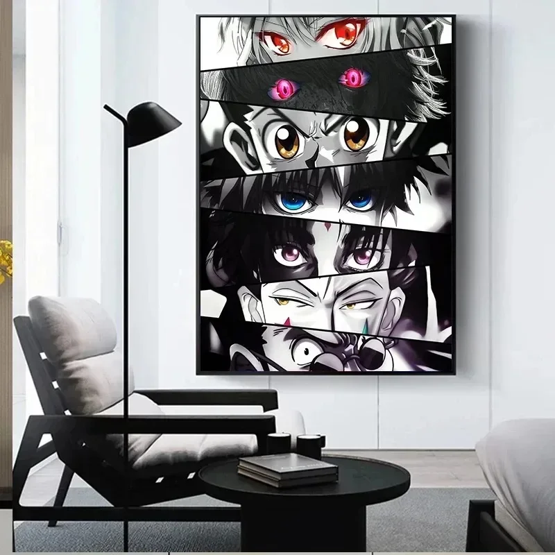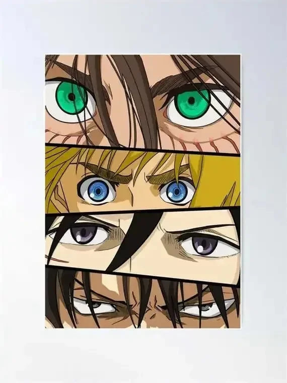 Highlight the intensity of your favorite characters with this anime eyes canvas poster — featuring Hunter x Hunter and Attack on Titan in a bold, aesthetic design for kawaii and manga-inspired rooms.