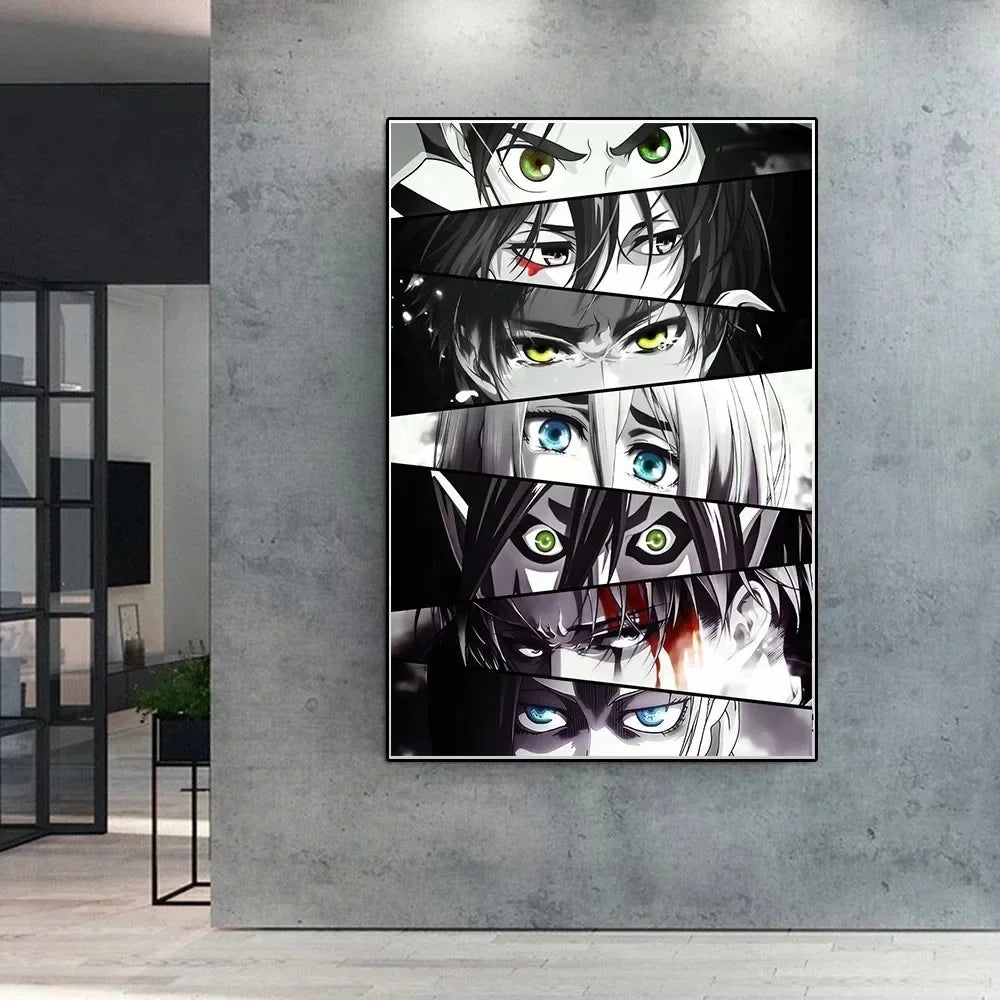 Anime Eyes Canvas Poster – Hunter x Hunter & Attack on Titan Wall Art