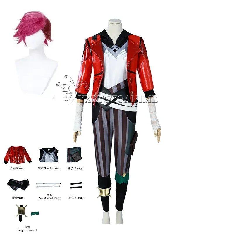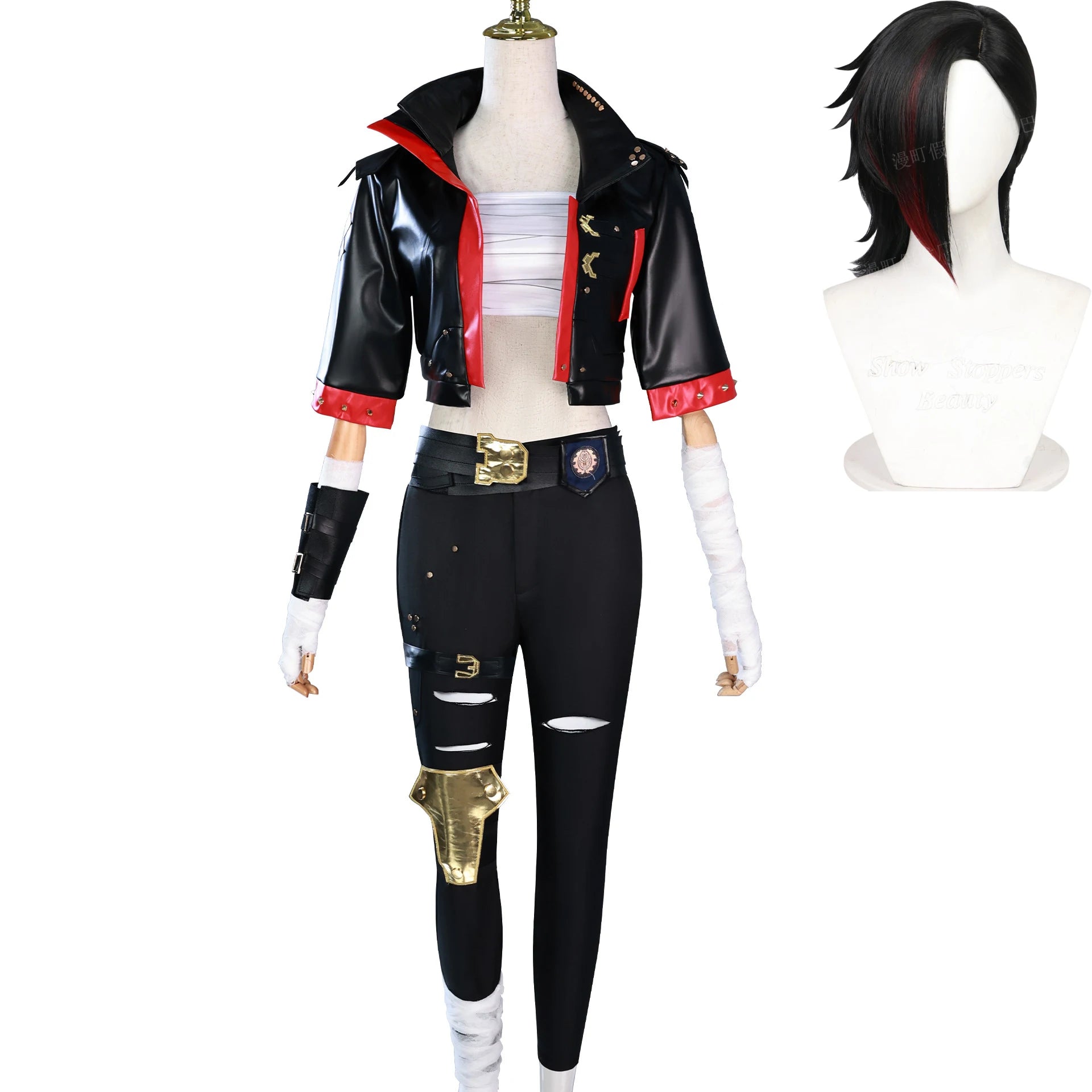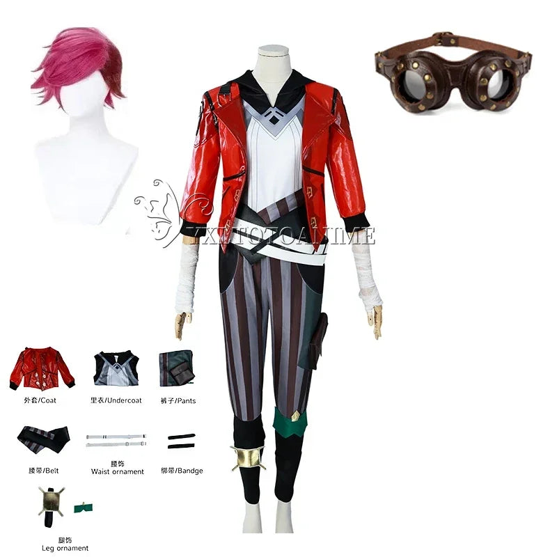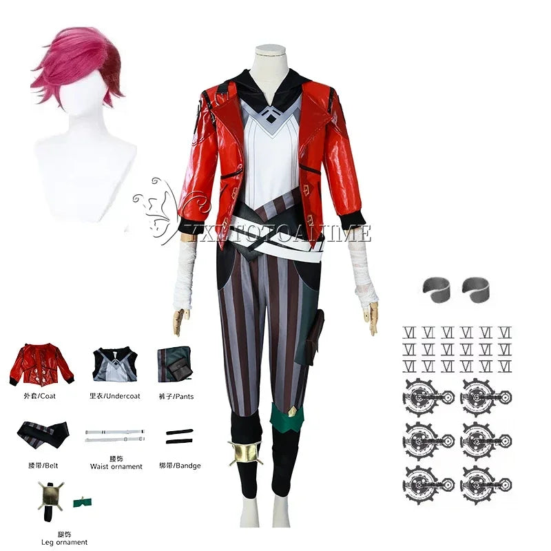 Step into the world of League of Legends with this Arcane Vi cosplay set — featuring her iconic outfit and black wig, perfect for Halloween, carnivals, and gaming events.