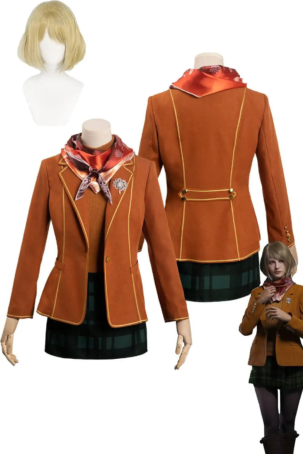 Transform into Ashley Graham with this complete cosplay set — featuring a styled wig, dress, coat, skirt, and stockings for a perfect Halloween or costume party look.