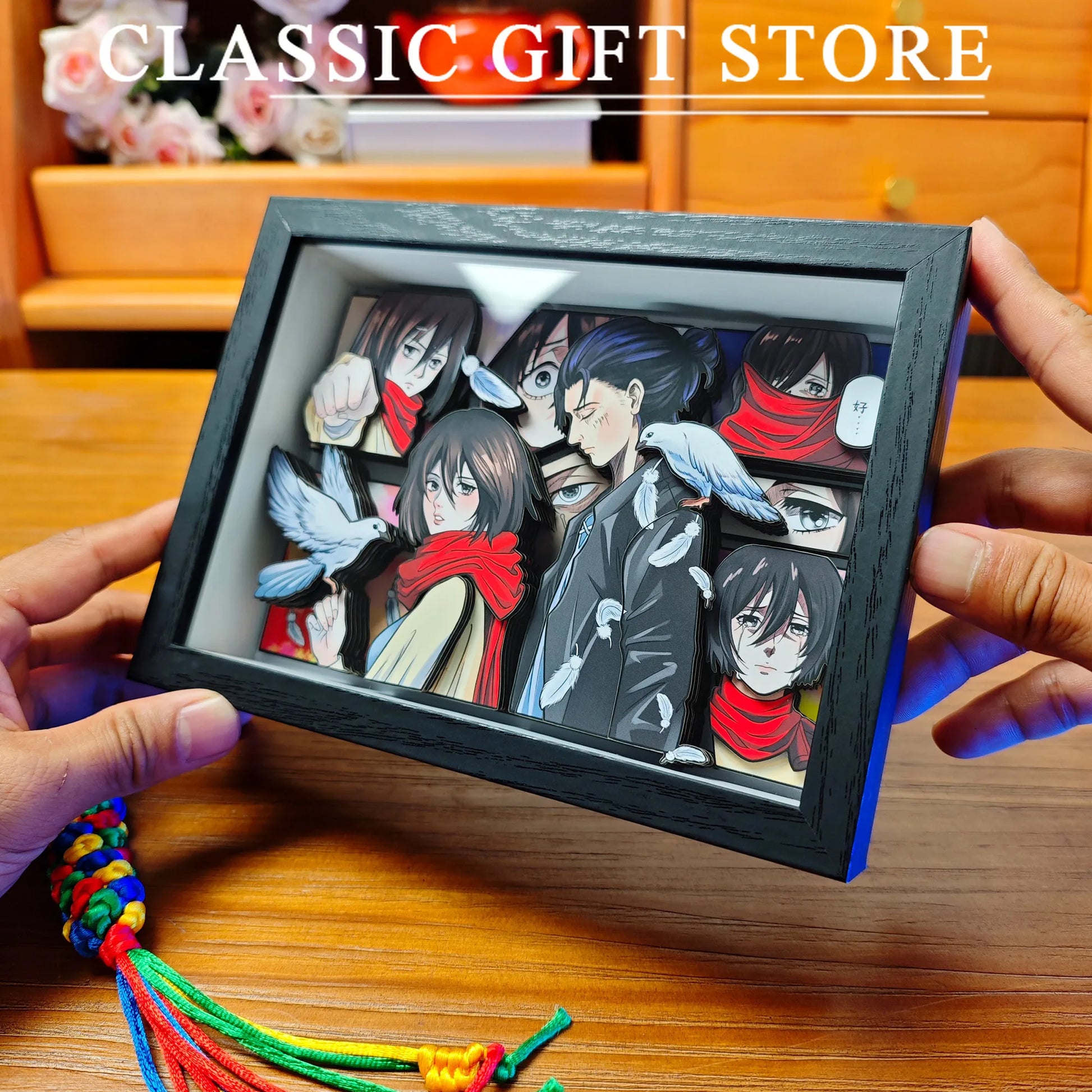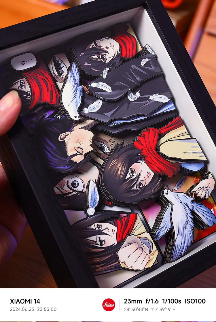 Bring your favorite Attack on Titan scenes to life with this handmade 3D decorative picture frame — a striking desktop piece that adds dimension and anime charm to any space.