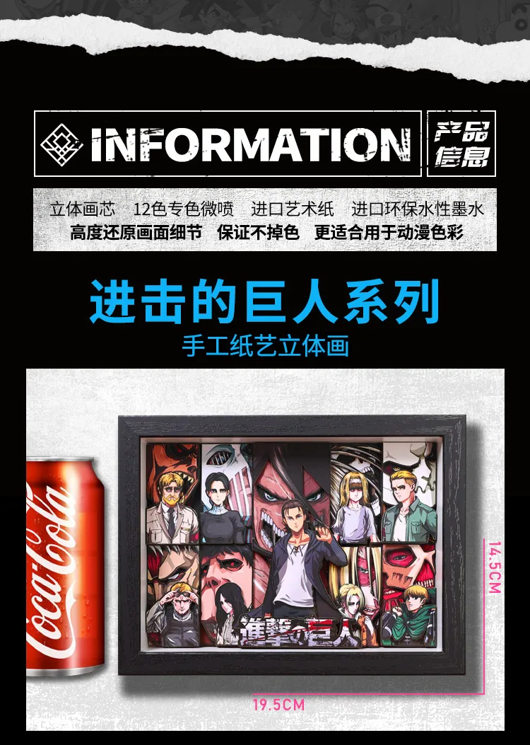 Add a pop of 3D anime flair to your space with this collectible Attack on Titan decorative frame – perfect for every true fan!