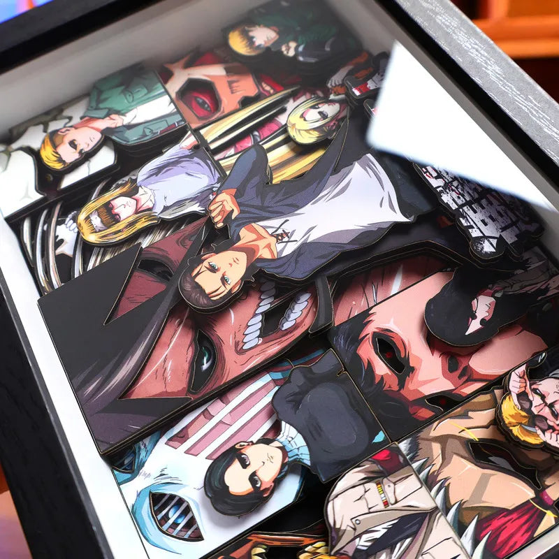 Bring your favorite Attack on Titan characters to life with this handcrafted 3D paper art — a unique and stylish piece of wall decor perfect for any anime fan or collector.