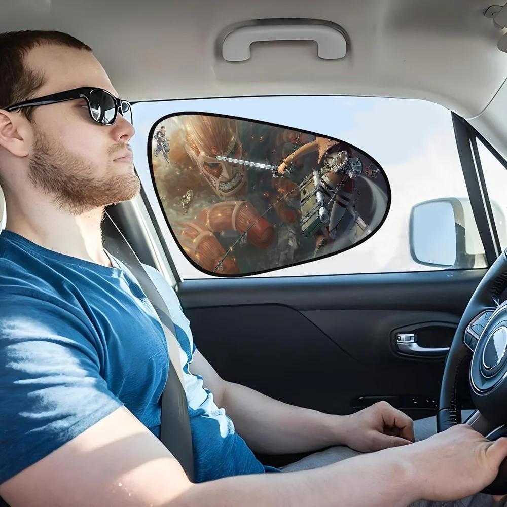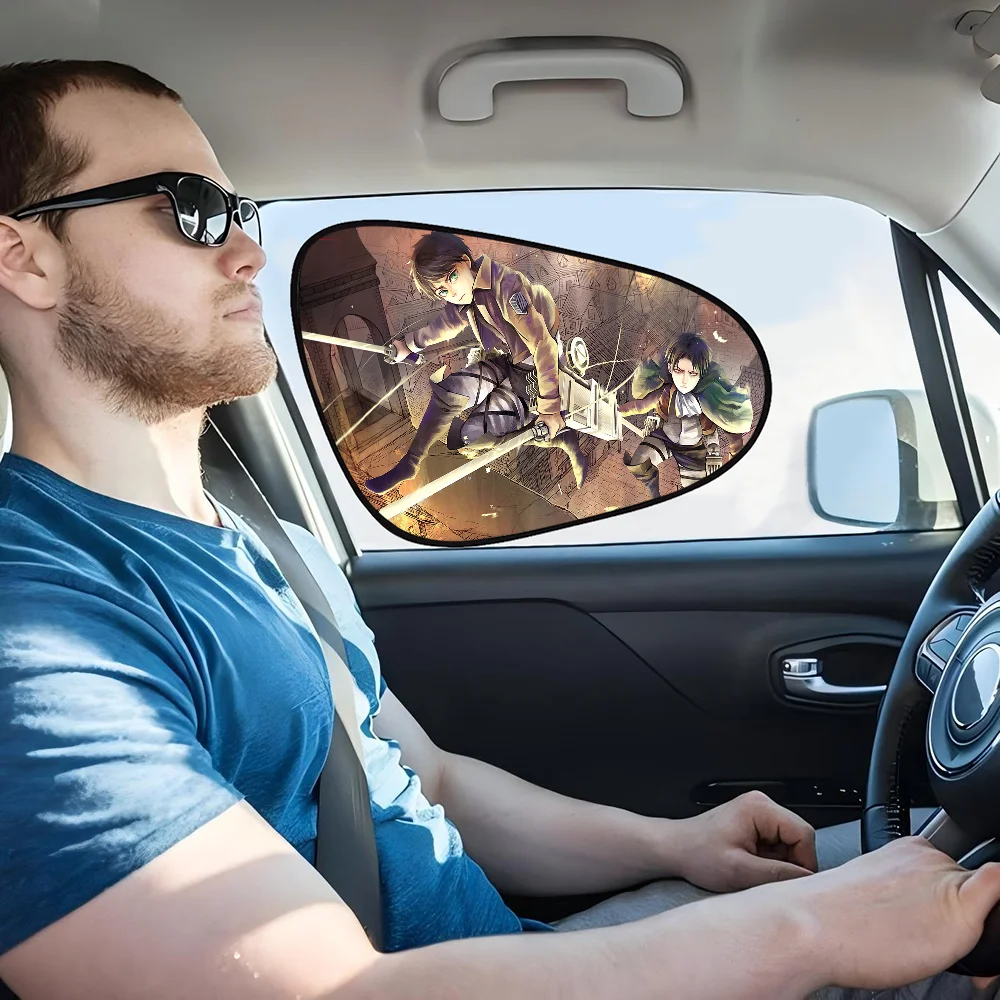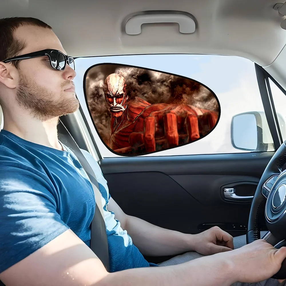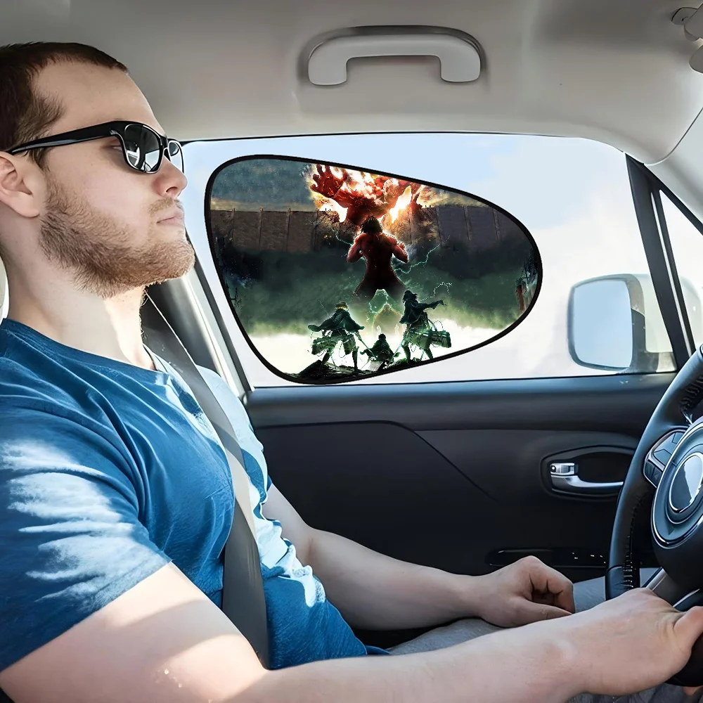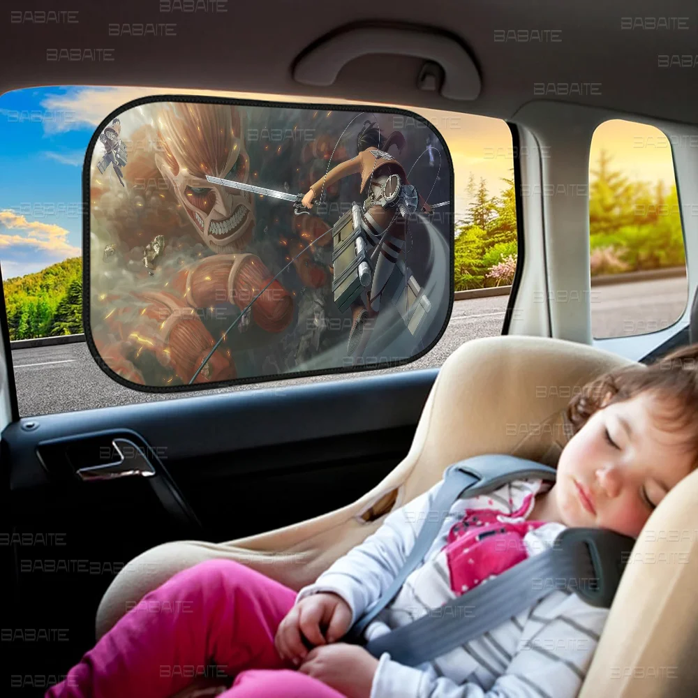 Protect your little ones with this Attack on Titan themed sun shade cover for car side windows — offering 99.9% UV protection and stylish anime design.