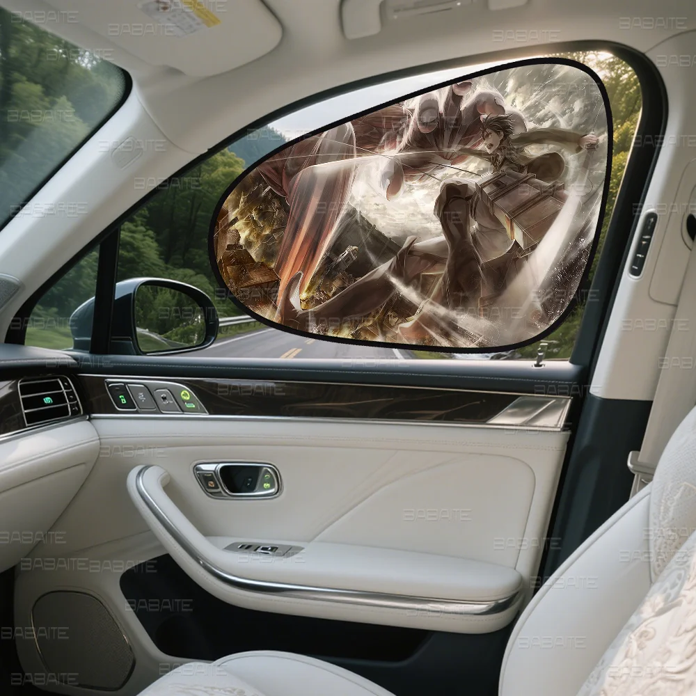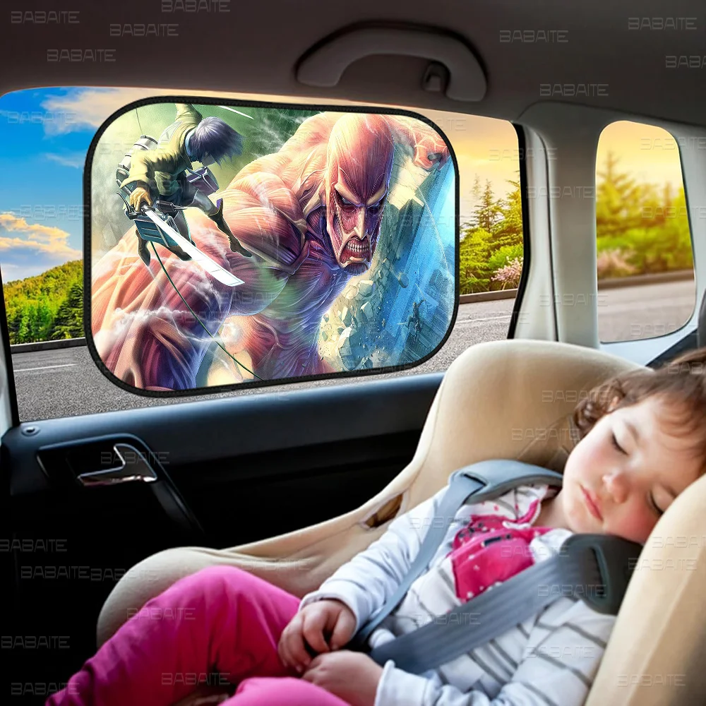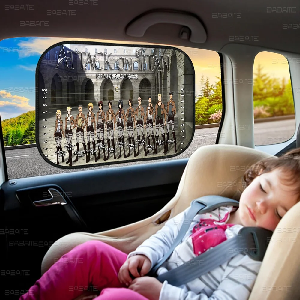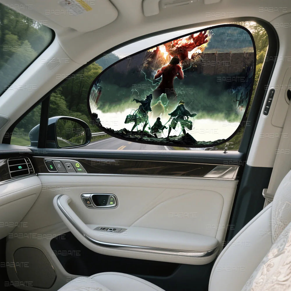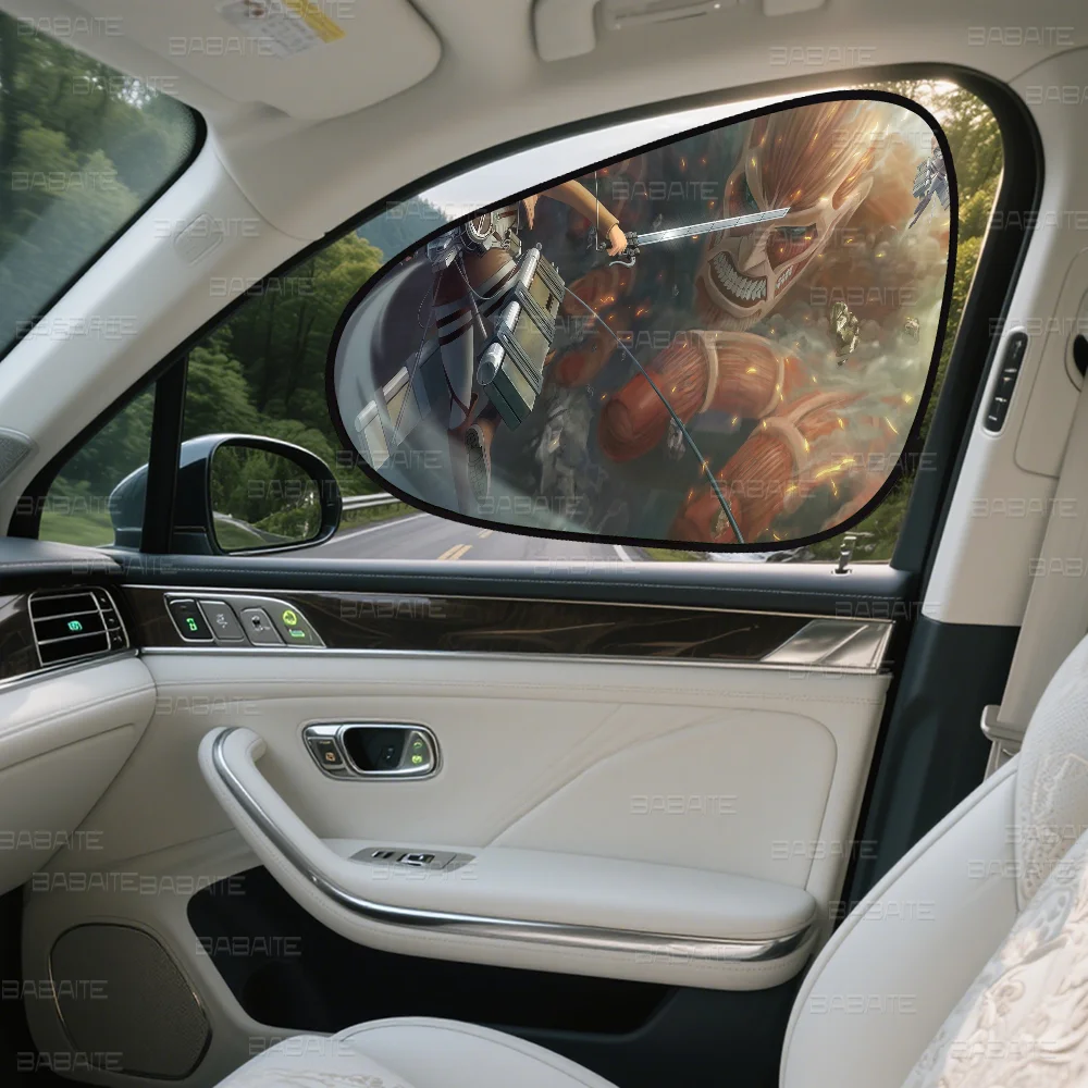 Protect your little ones with this Attack on Titan themed sun shade cover for car side windows — offering 99.9% UV protection and stylish anime design.