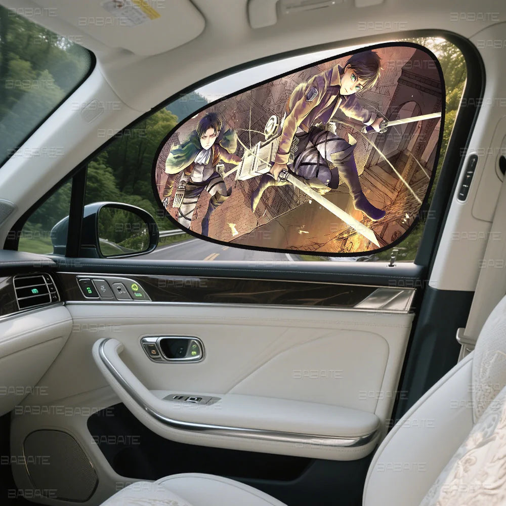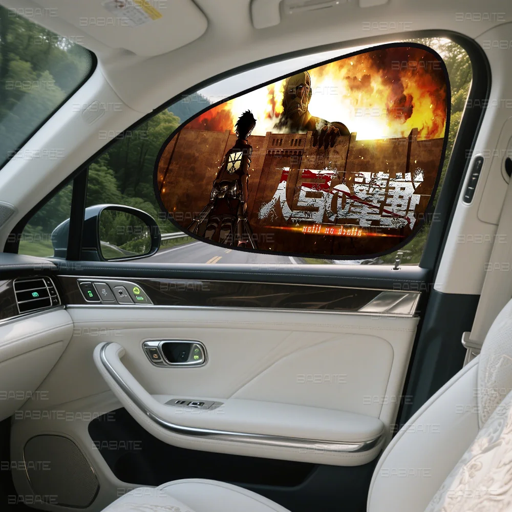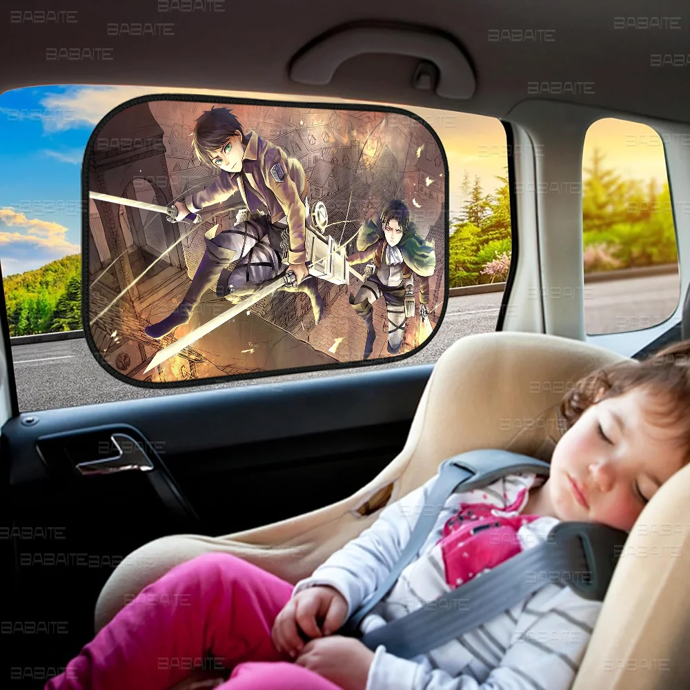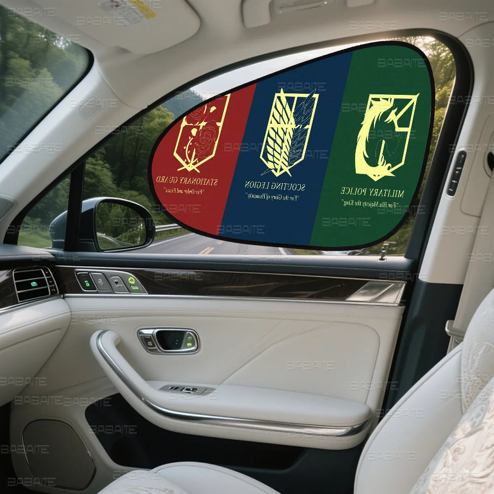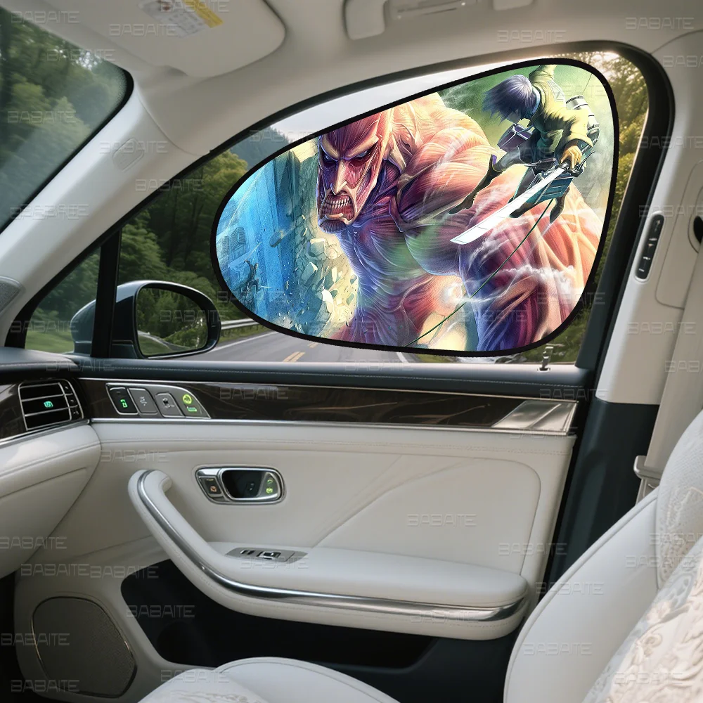 Protect your little ones with this Attack on Titan themed sun shade cover for car side windows — offering 99.9% UV protection and stylish anime design.