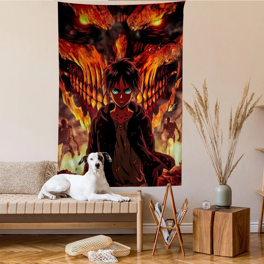 Bring vibrant anime energy to your home with this Attack on Titan cartoon tapestry — a colorful and stylish wall hanging perfect for household decoration.