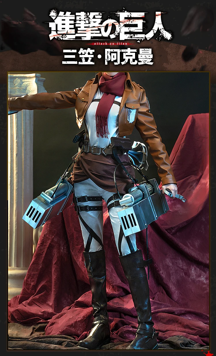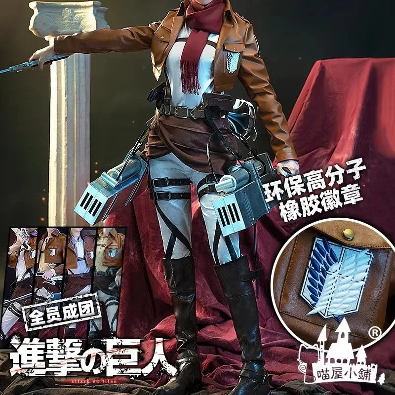 Join the Scout Regiment with this Attack on Titan cosplay costume set featuring iconic uniforms and cloaks inspired by Mikasa Ackerman, Eren Yeager, and Levi Ackerman—perfect for both men and women at Halloween and anime events.