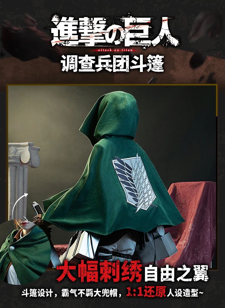 Includes Scout Regiment uniform jacket, pants, and signature green cloak
