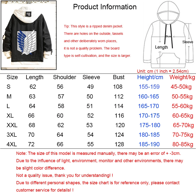 Attack on Titan Denim Hoodie Jacket – Scout Regiment Mikasa/Eren Cosplay Coat