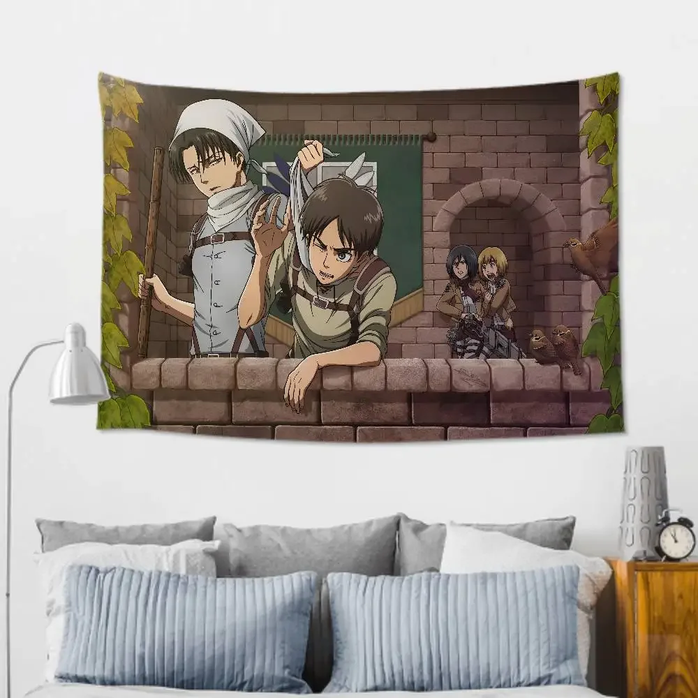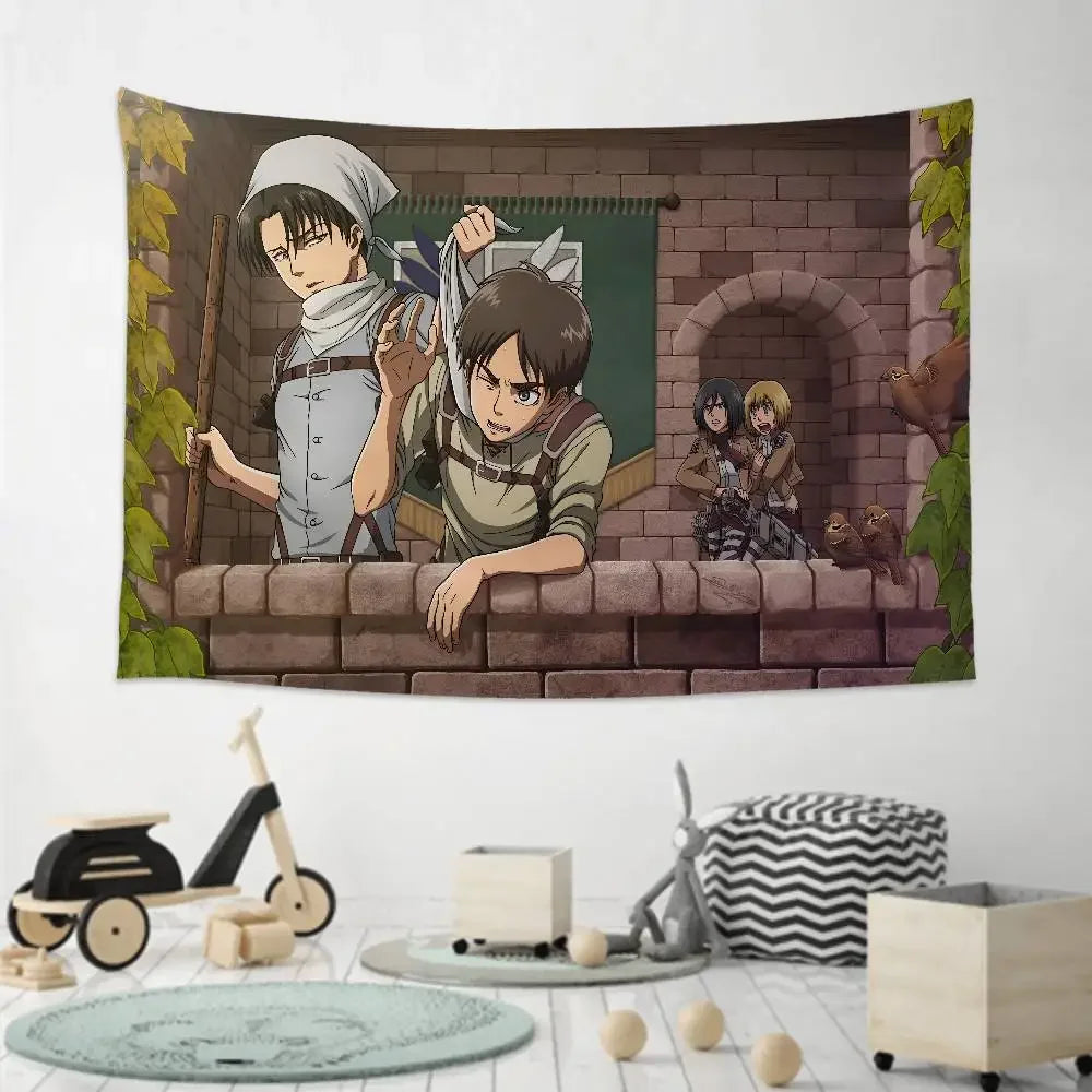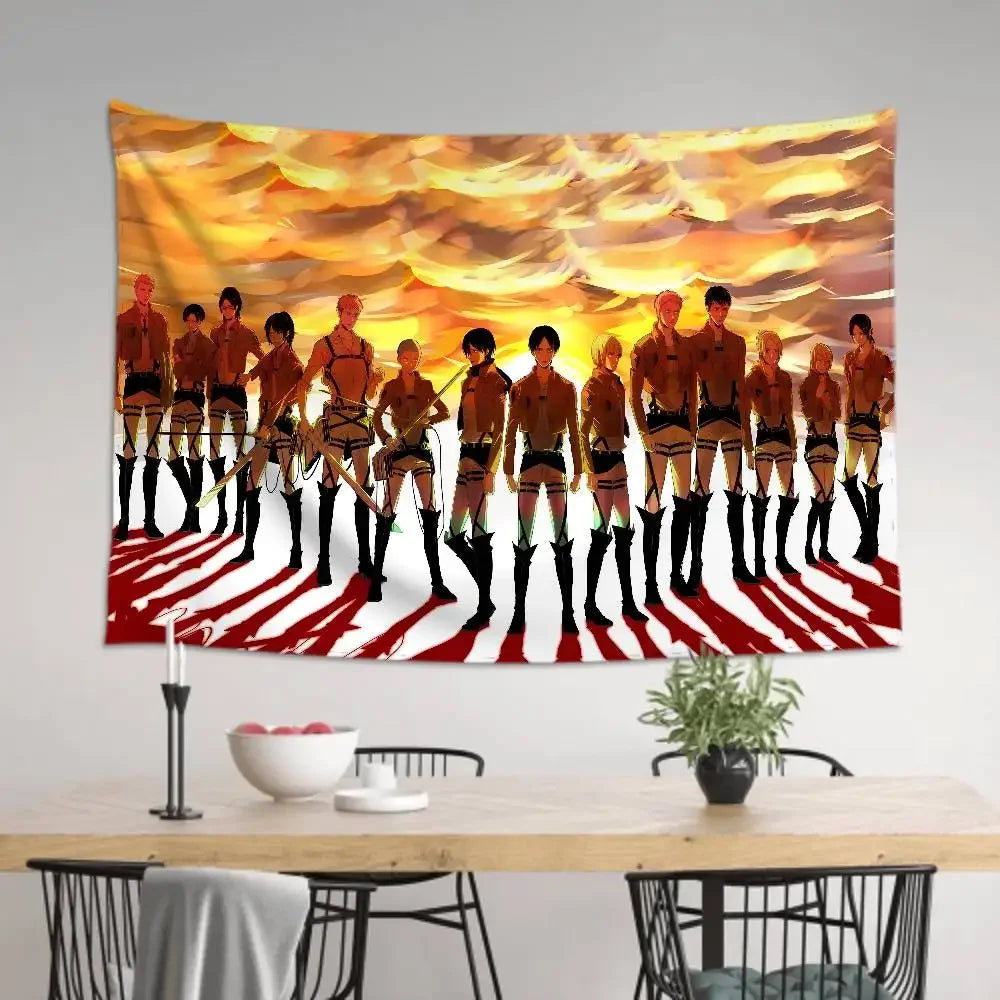 Bring the world of Attack on Titan to your room with this vibrant tapestry — perfect as a wall cloth for bedrooms, party backgrounds, or even nursery decor.
