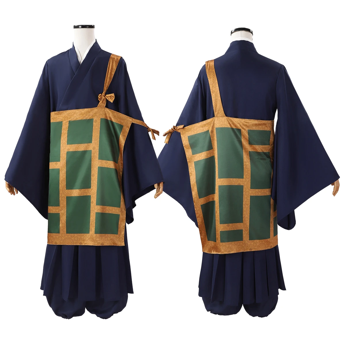 Bring the enigmatic Suguru Geto from Jujutsu Kaisen to life with this detailed cosplay set, including dark blue kimono, top, skirt, pants, cassock, wig, and rose net—perfect for Halloween and gifting.