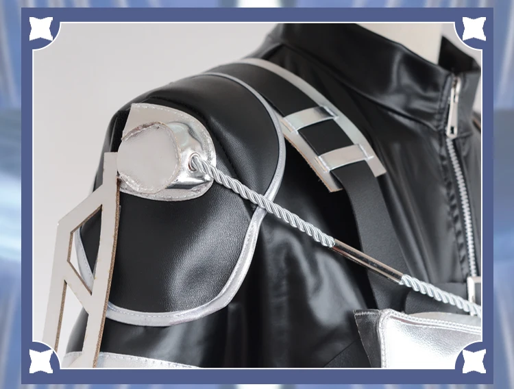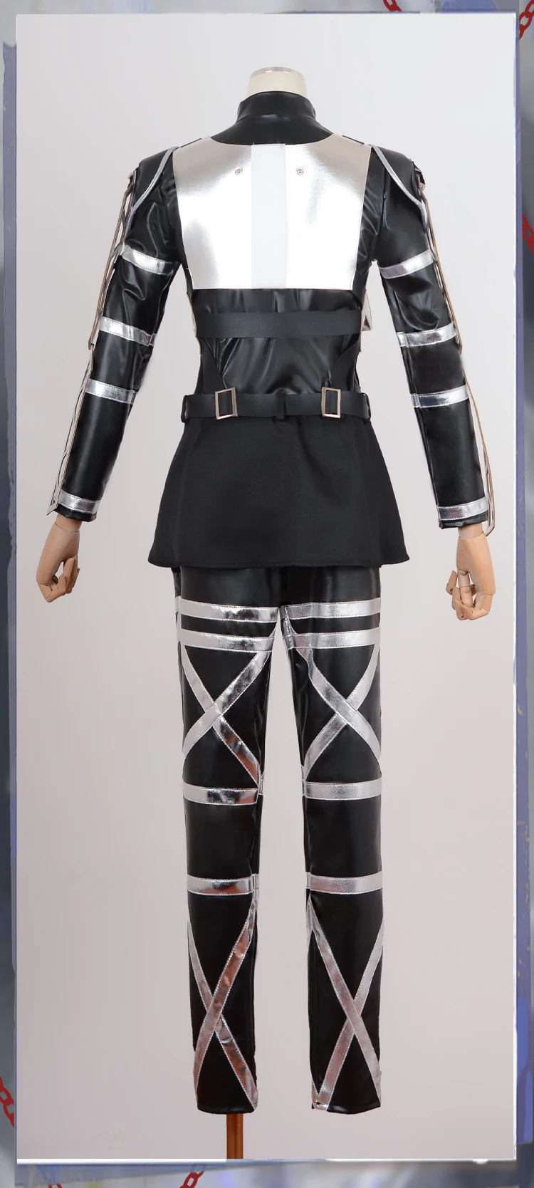 Full cosplay set includes jacket, shirt, pants, scarf, and harness belts