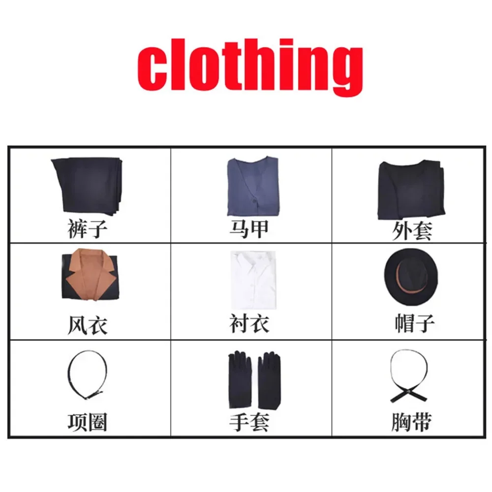 Step into the world of Bungou Stray Dogs with this Nakahara Chuuya cosplay set, including hat, uniform trench coat, and pants—perfect for anime fans and cosplay events.