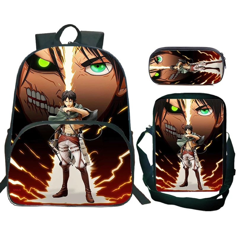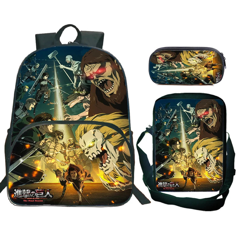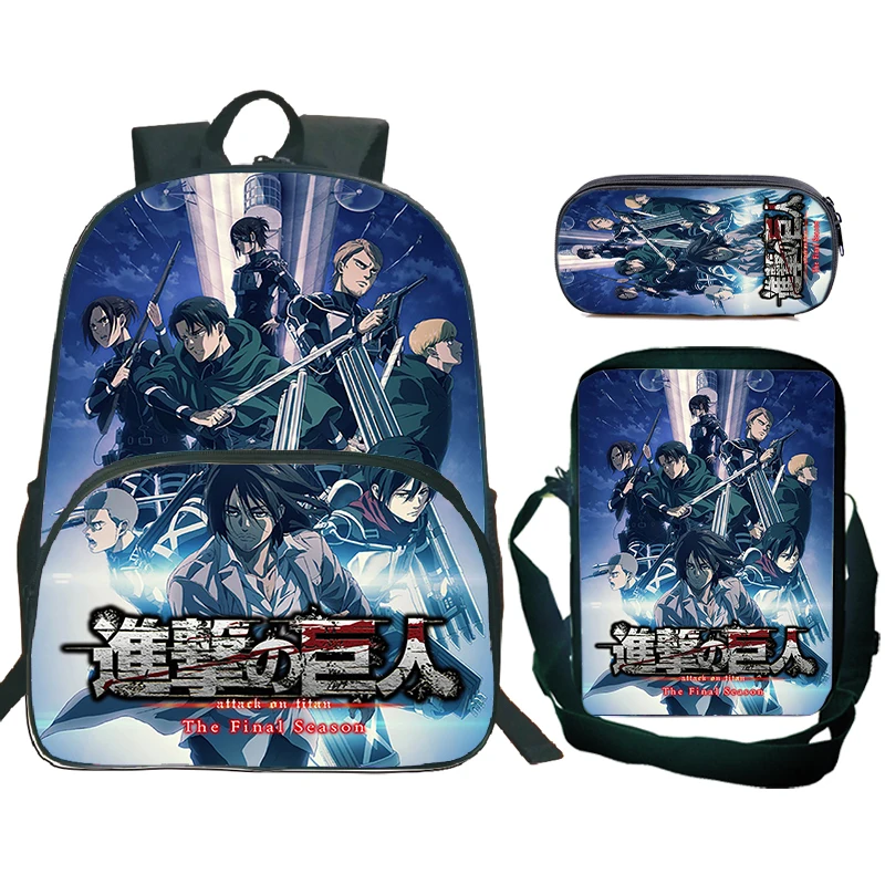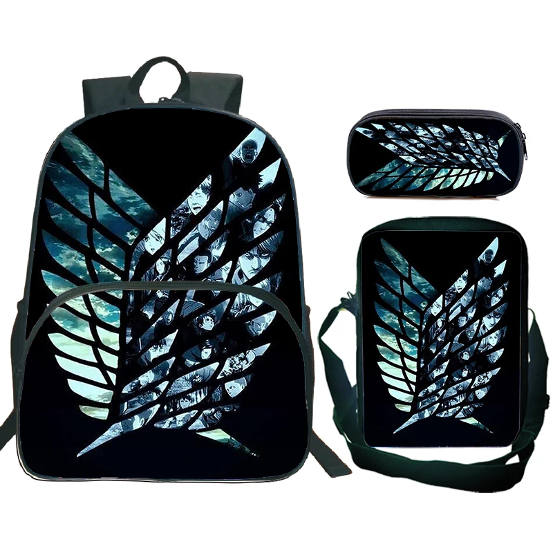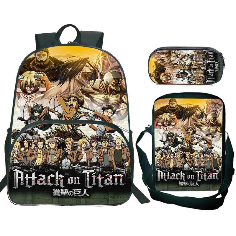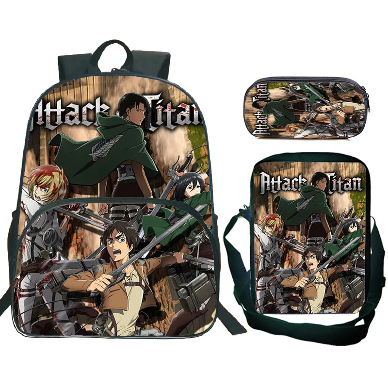 Attack on Titan Backpack 3pcs Set – Schoolbag, Shoulder Bag & Pencil Case