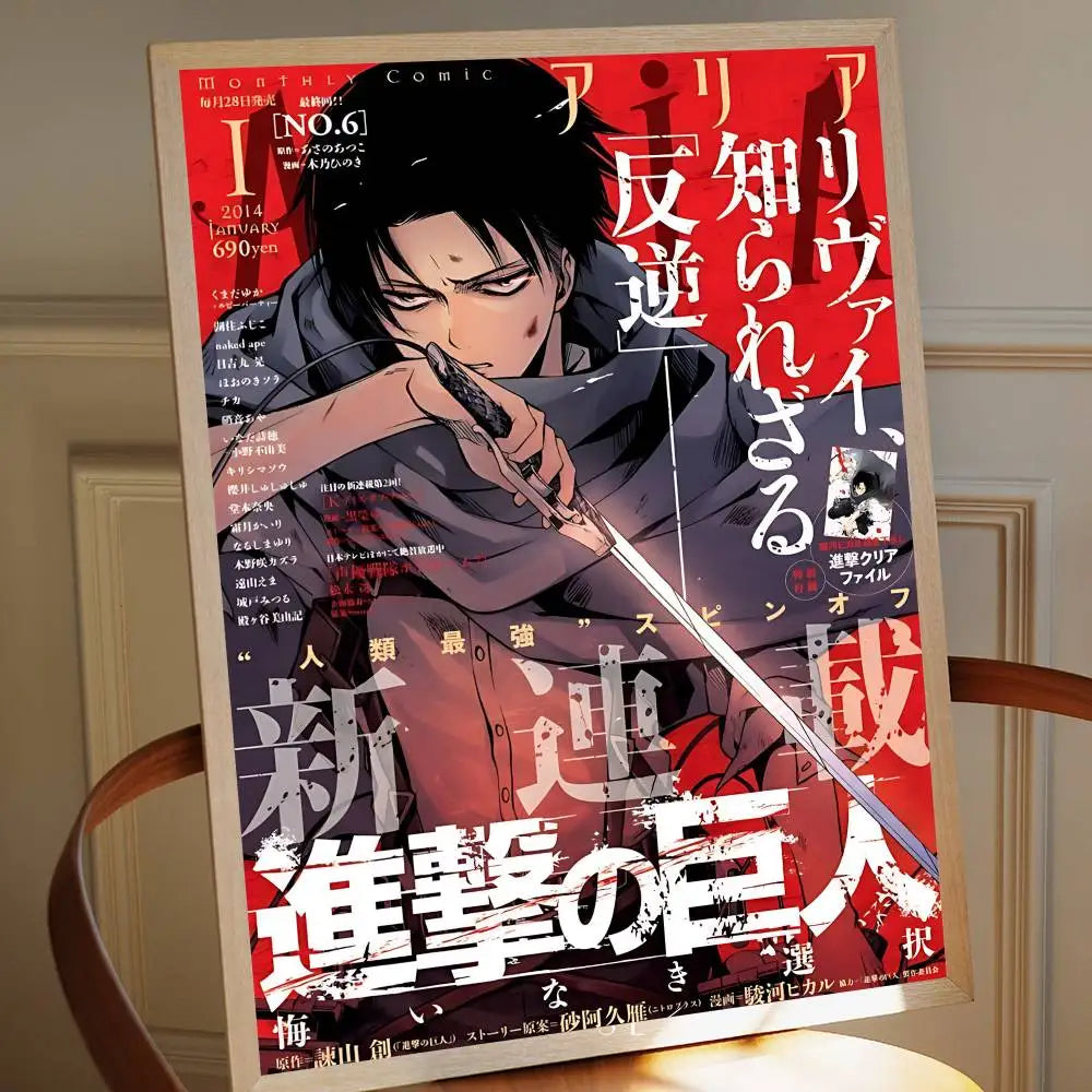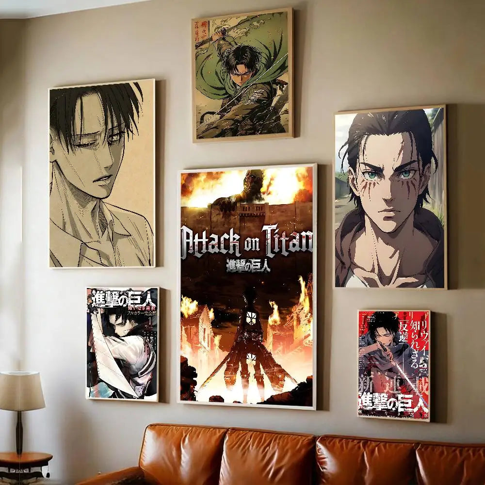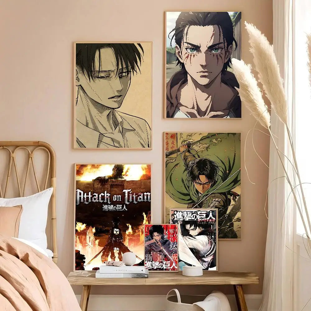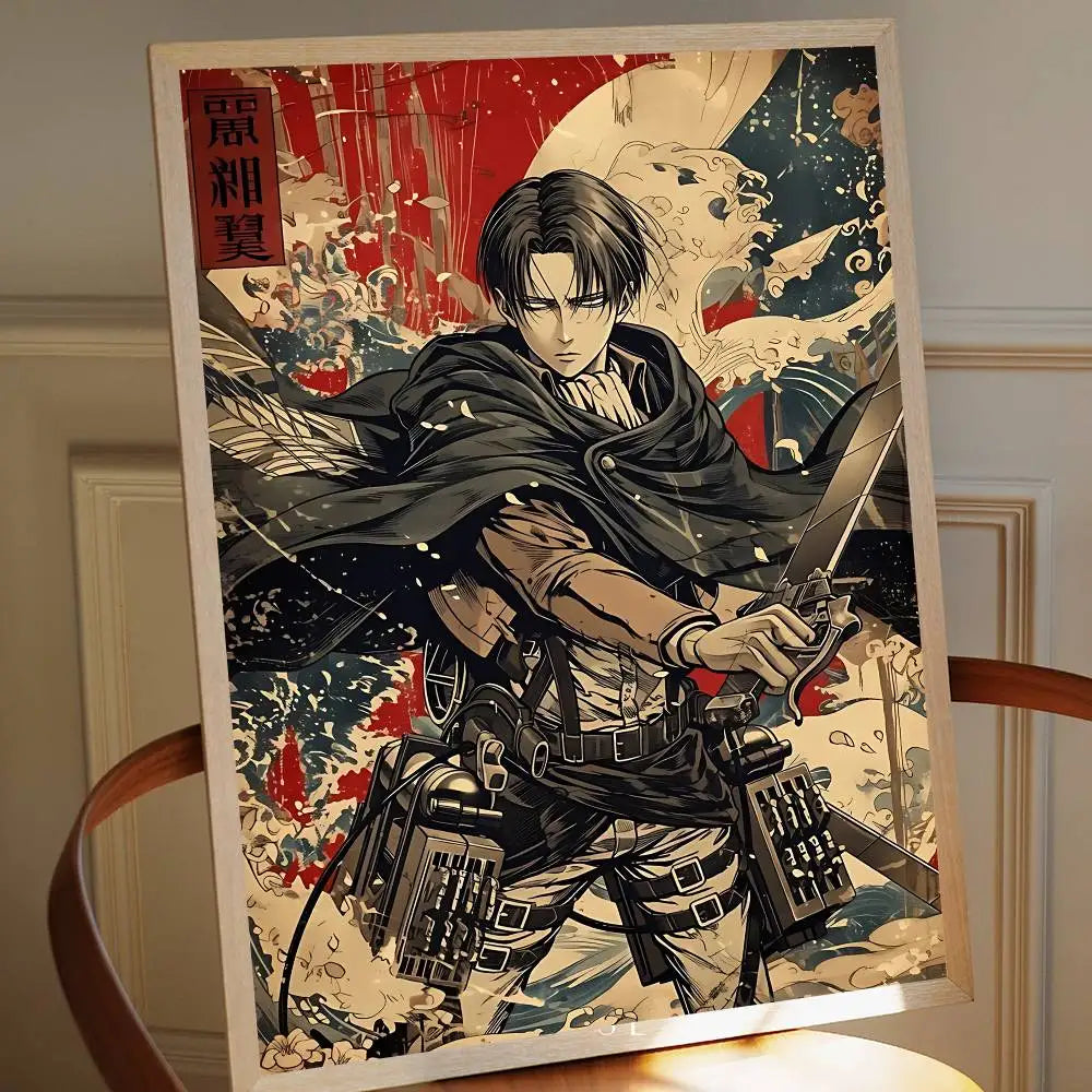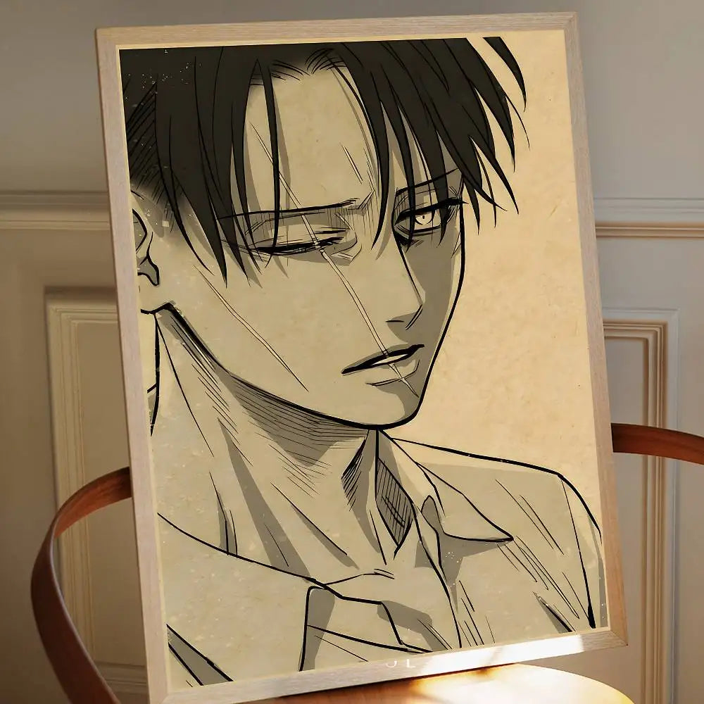 Add timeless anime flair to your space with this Attack on Titan Levi Ackerman vintage poster — a sticky retro kraft paper print perfect for DIY room, bar, or cafe decor.