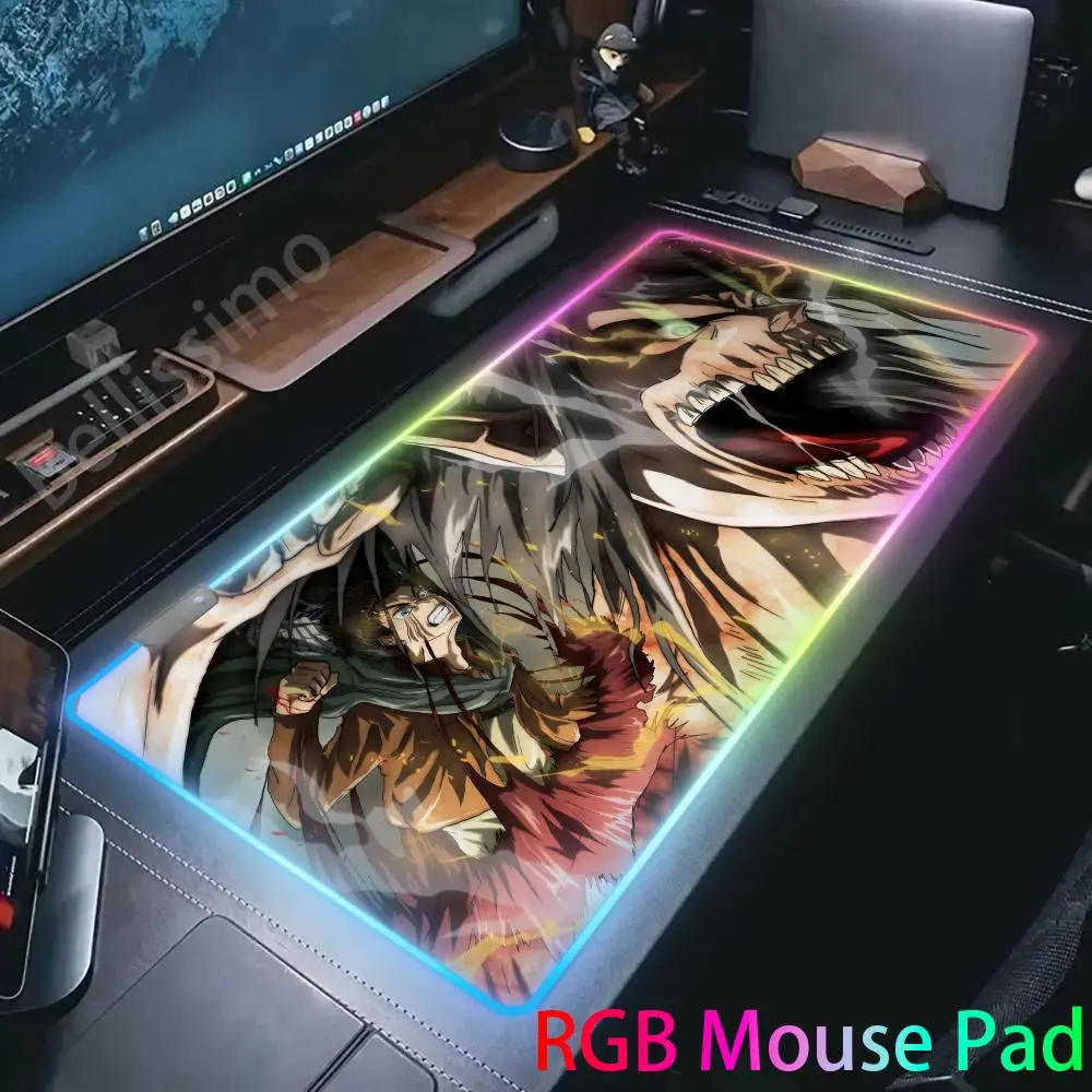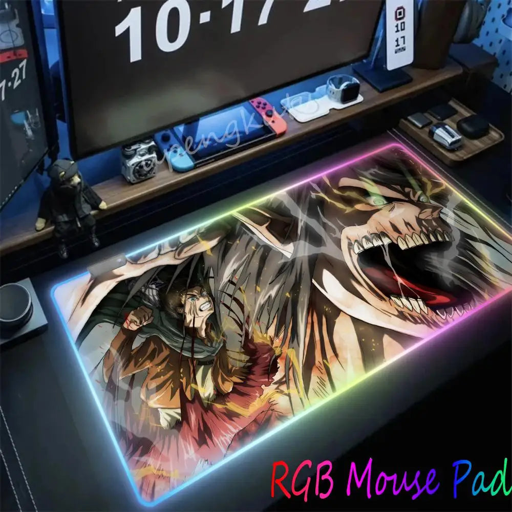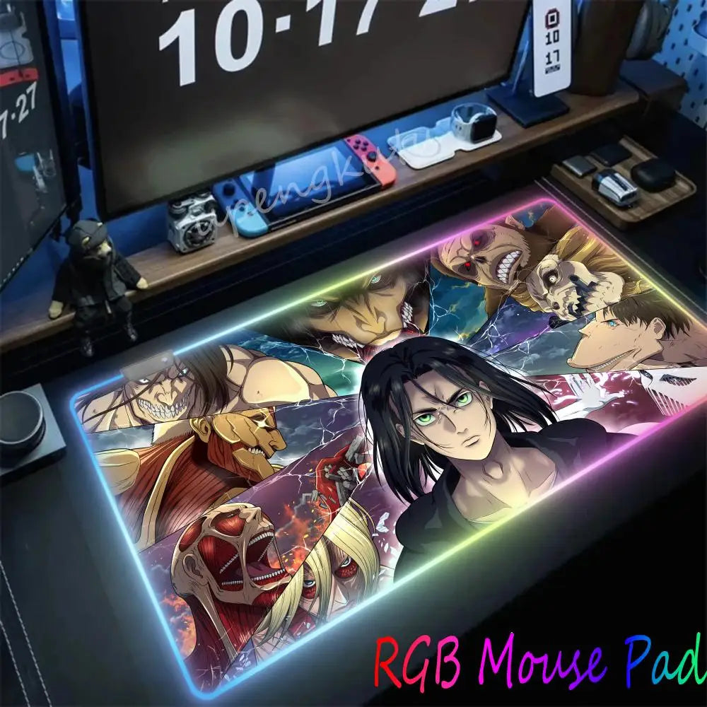 Attack on Titan RGB LED Mouse Pad – Large Anime Gaming Desk Mat