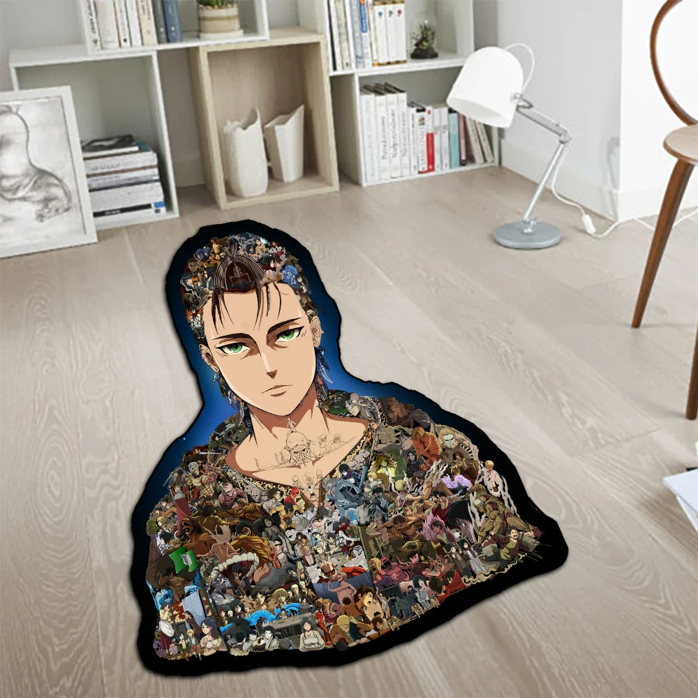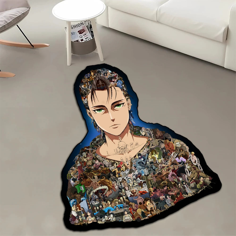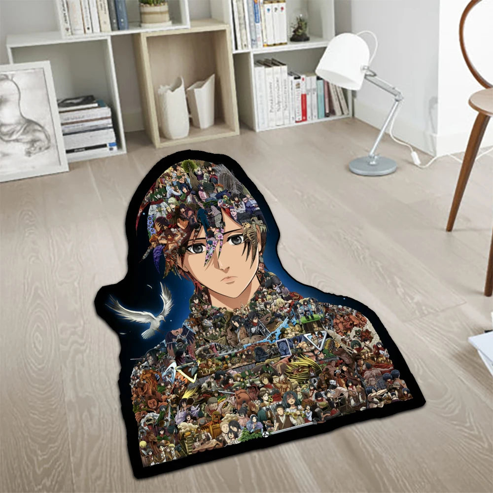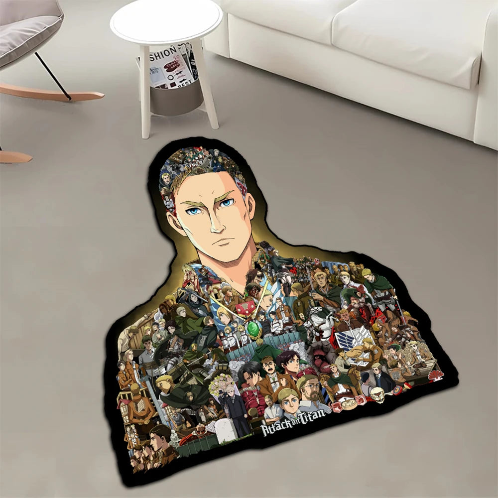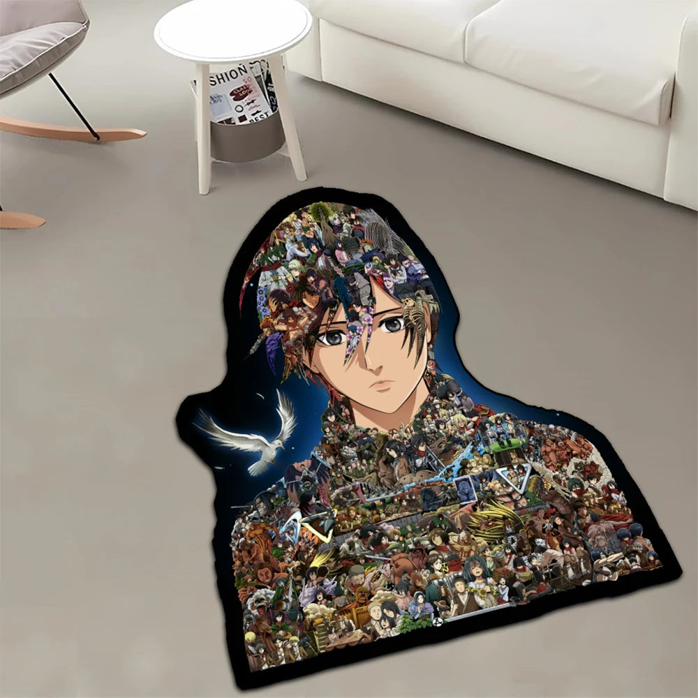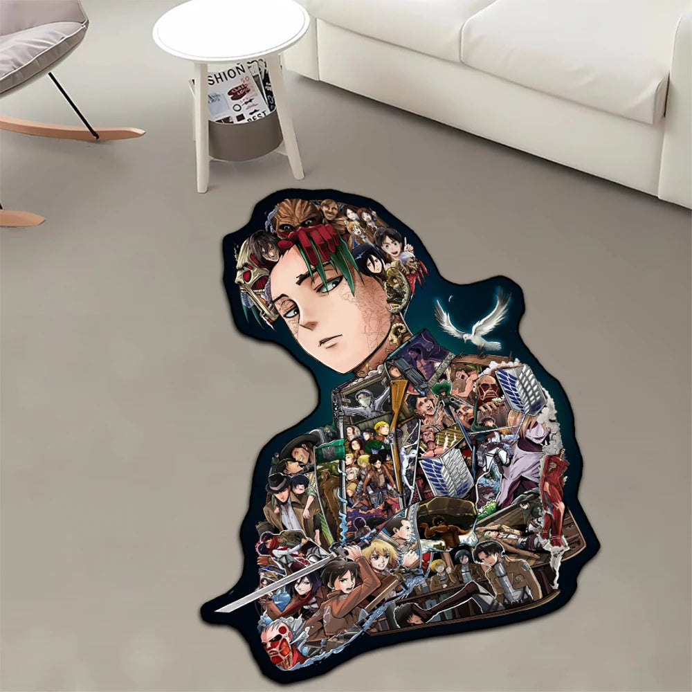 Make a bold statement with this custom Attack on Titan irregular-shaped rug — a handmade piece of anime wall art and floor decor that adds personality to any room.