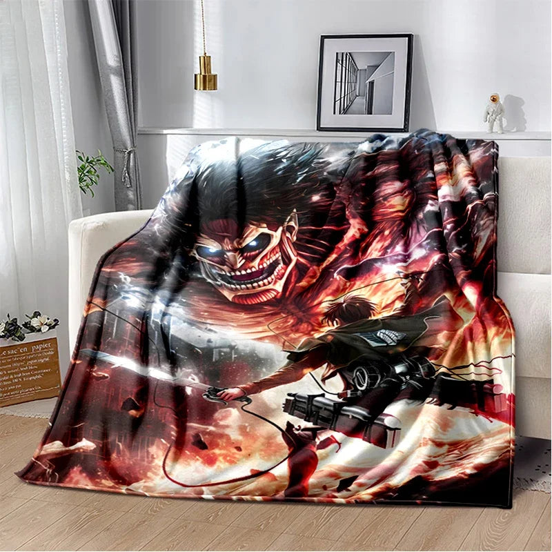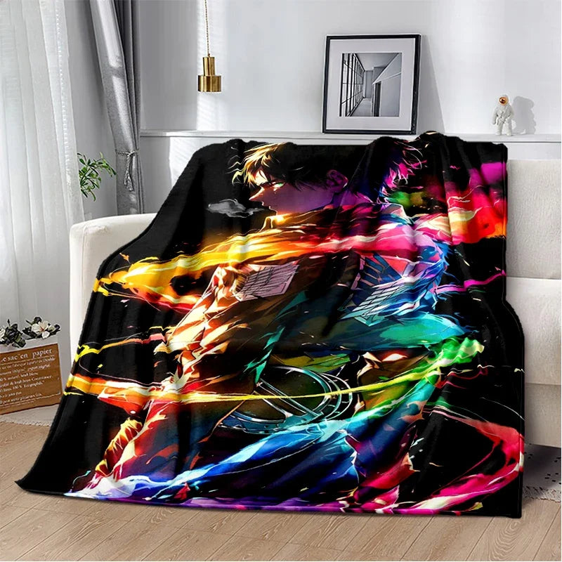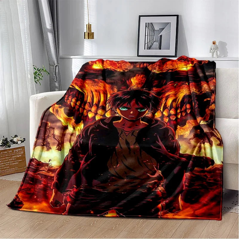 Eren Flannel Blanket – Soft Attack on Titan Throw for Bed & Sofa