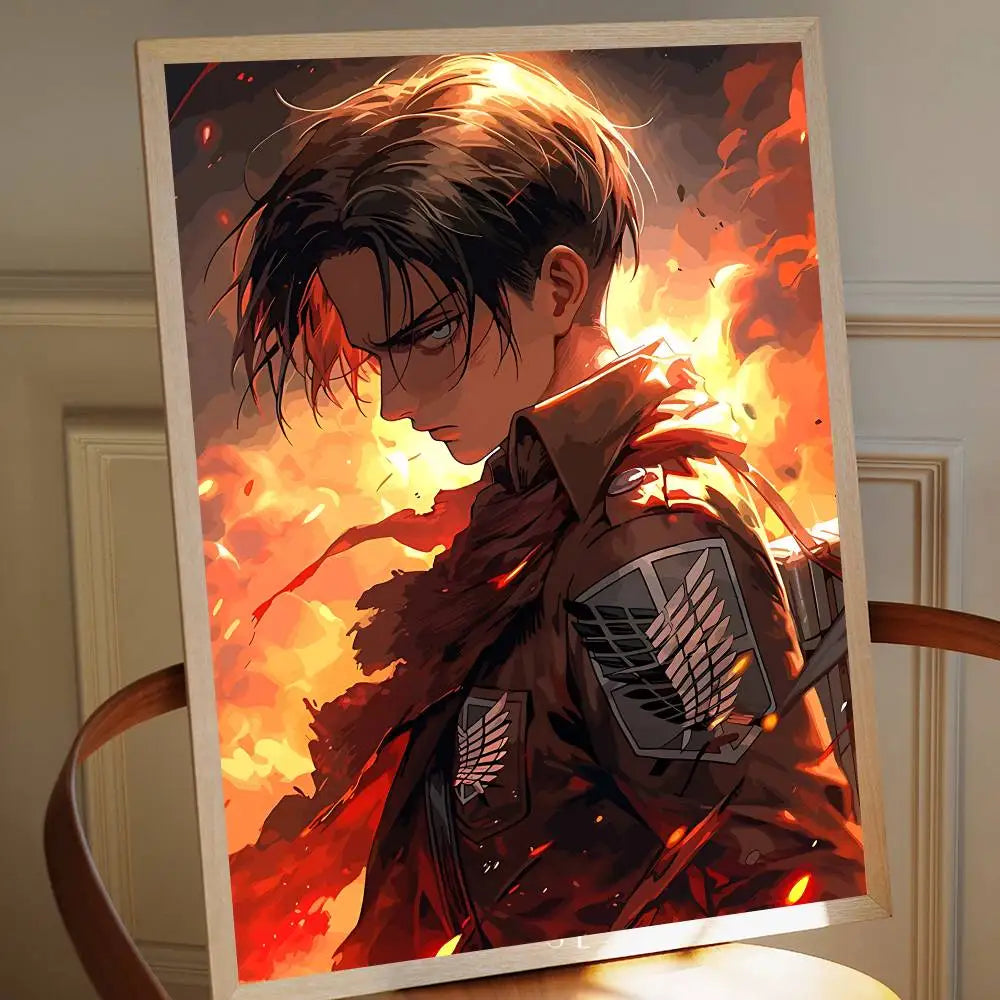 Decorate your space effortlessly with this Attack on Titan Levi Ackerman DIY sticky poster — minimalist whitepaper prints perfect for Nordic-style home decor.