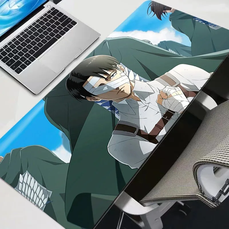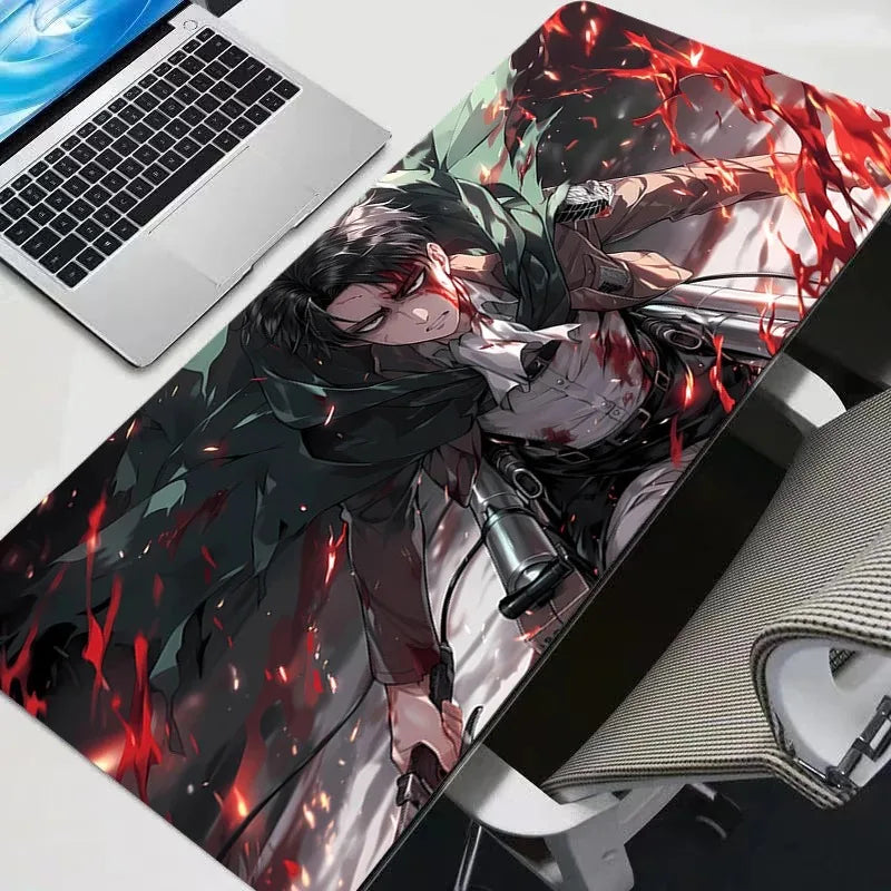 Enhance your gaming experience with these large Attack on Titan Levi mouse pads — extended XXL deskpads built for precision, durability, and anime style!