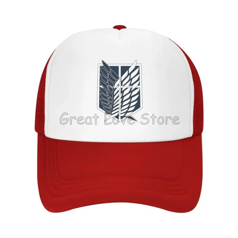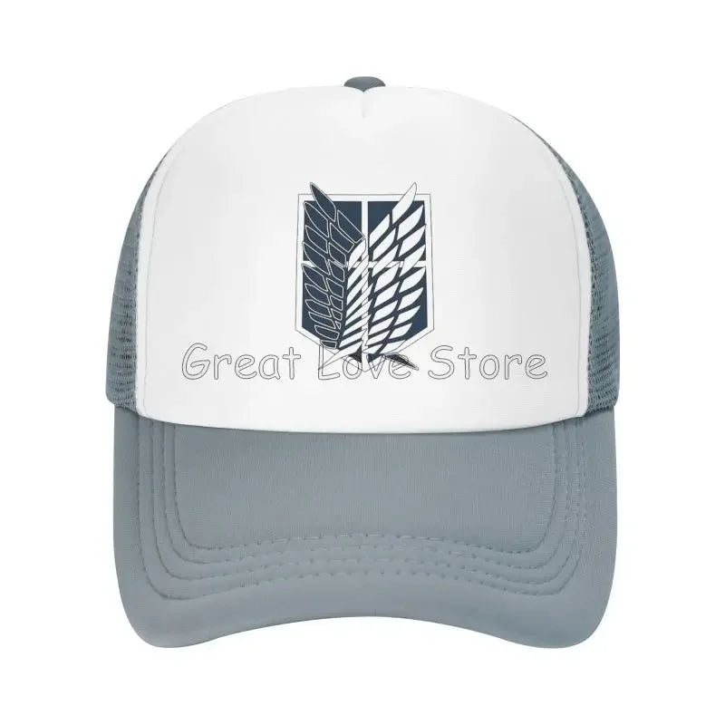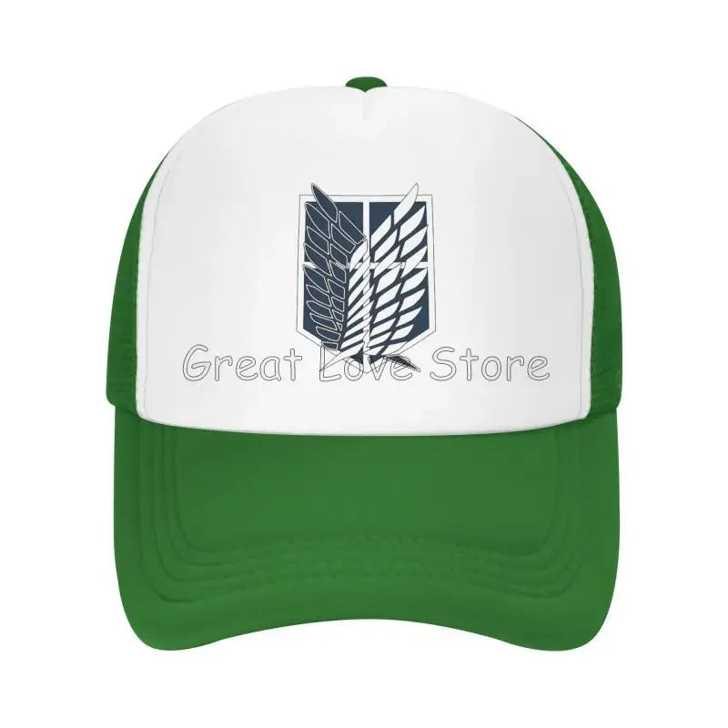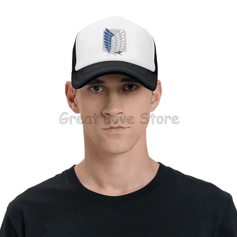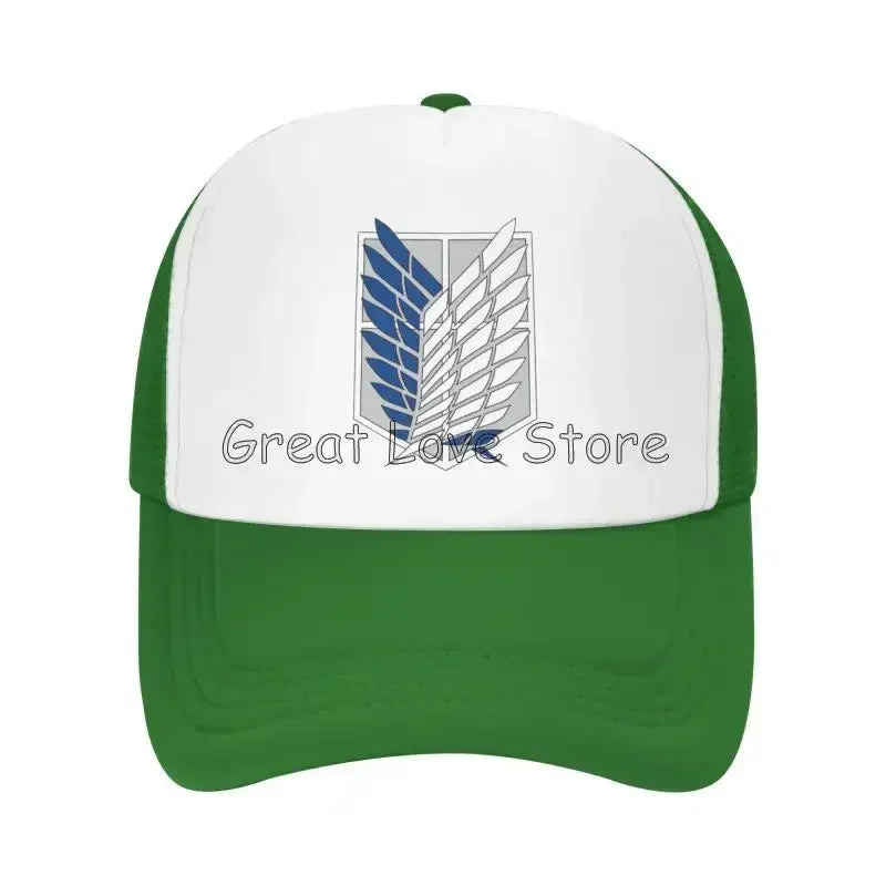 Stay cool and stylish with this Attack on Titan mesh baseball cap featuring the Wings of Freedom — a breathable snapback hat perfect for anime fans and casual wear.