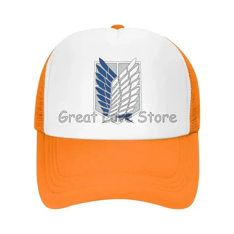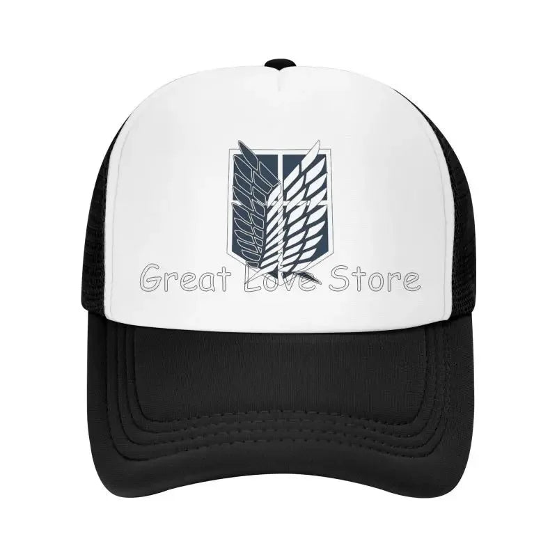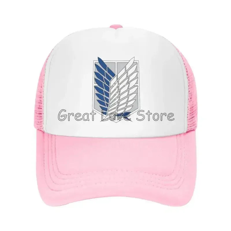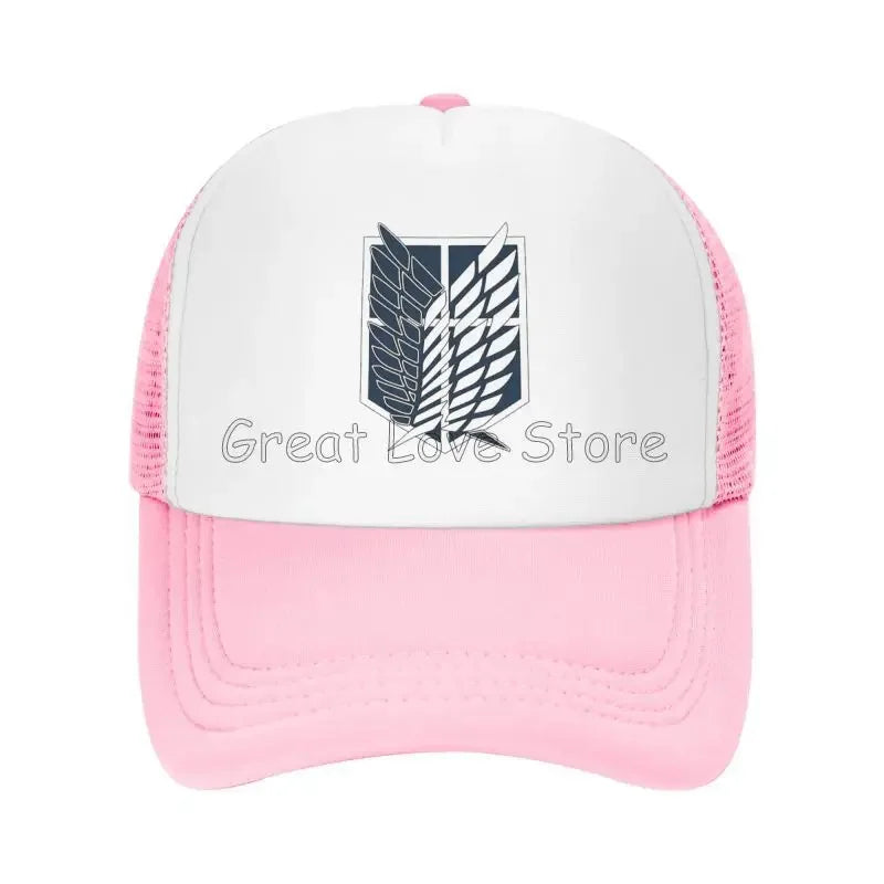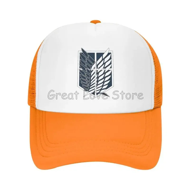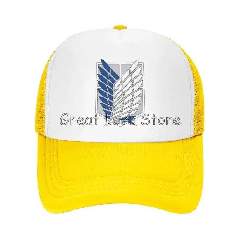 Stay cool and stylish with this Attack on Titan mesh baseball cap featuring the Wings of Freedom — a breathable snapback hat perfect for anime fans and casual wear.