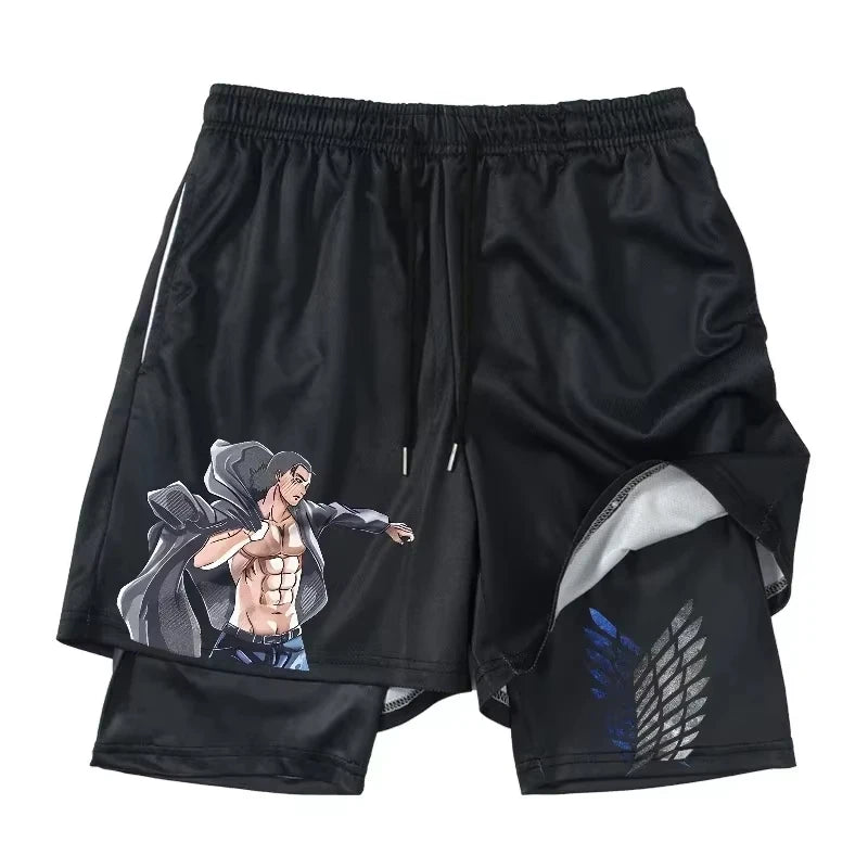 Train like a Scout—order your Attack on Titan 2-in-1 gym shorts today!