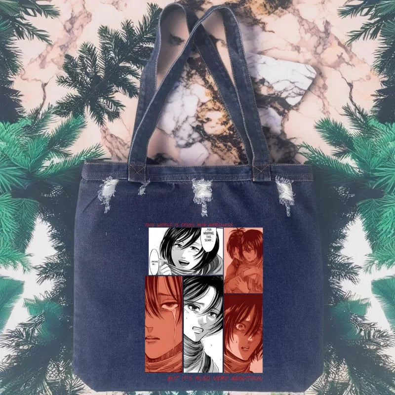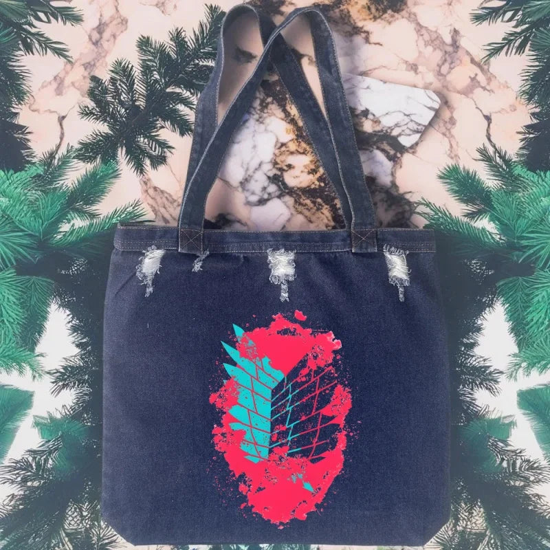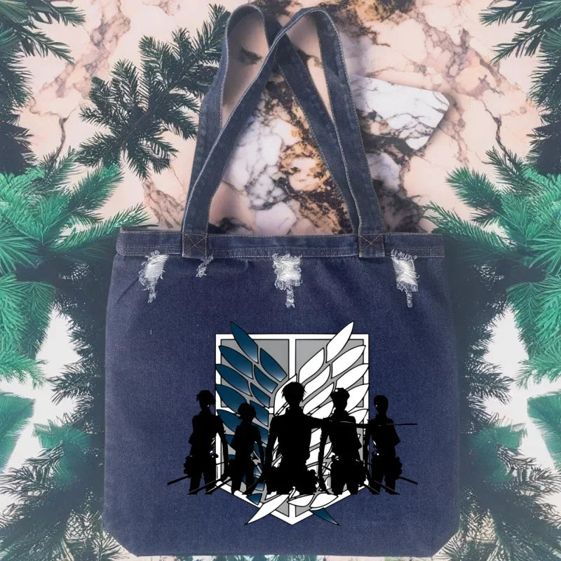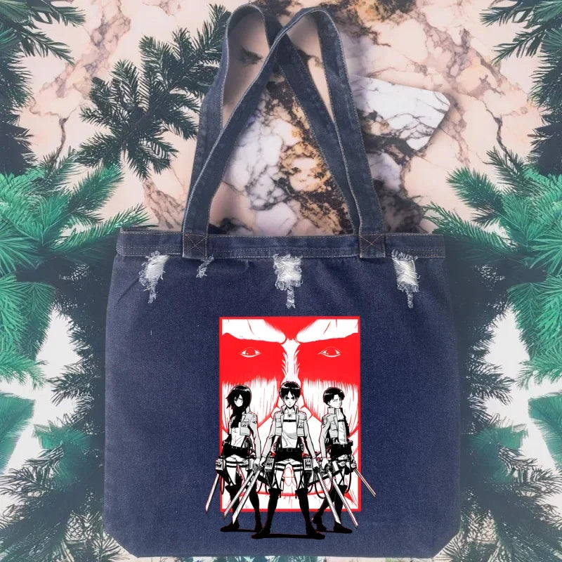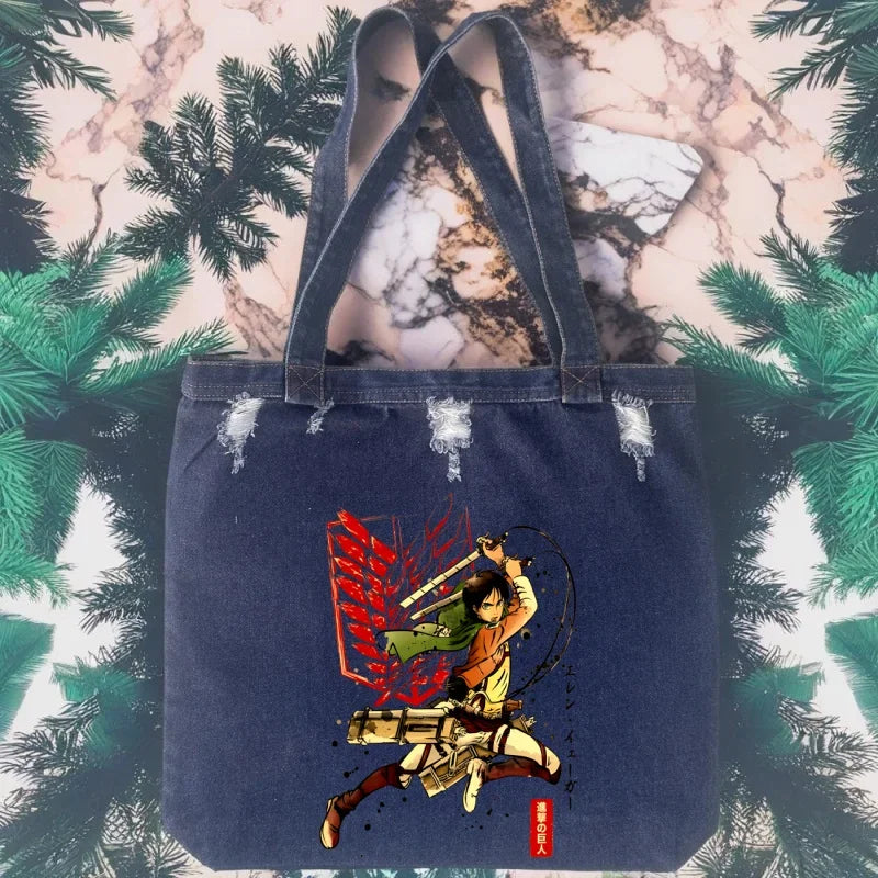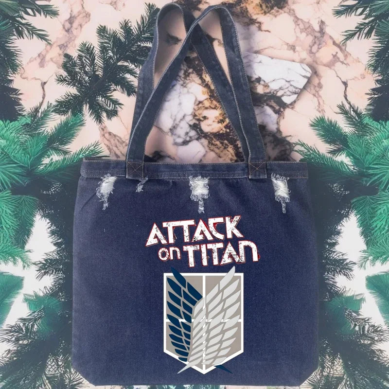 Stand out with a blend of anime and vintage street style — get your Attack on Titan denim sling bag today!