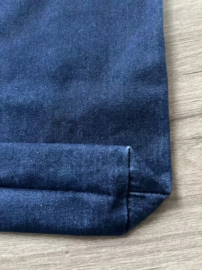 Durable cowboy denim fabric with reinforced stitching and printed anime artwork.