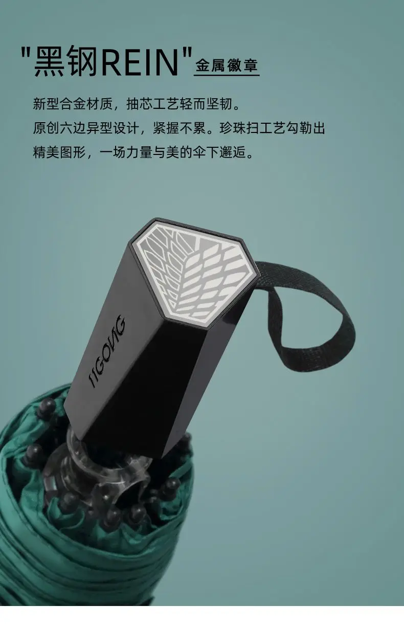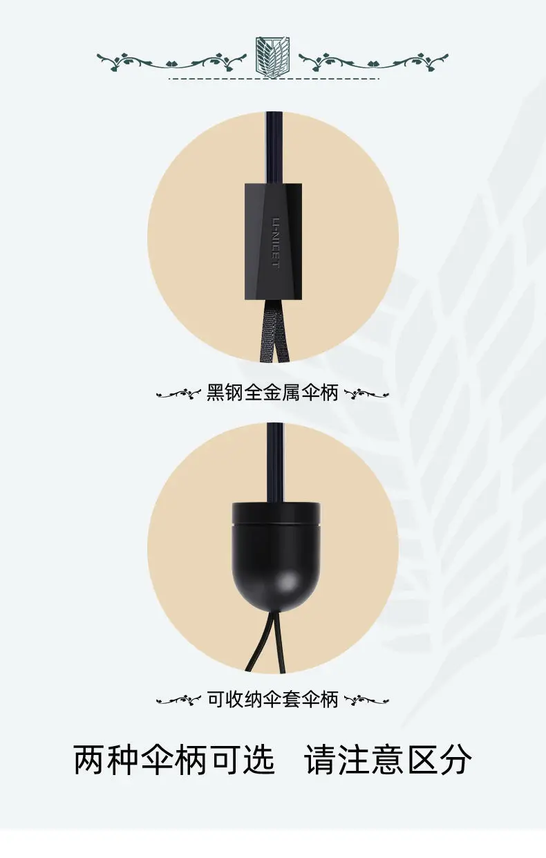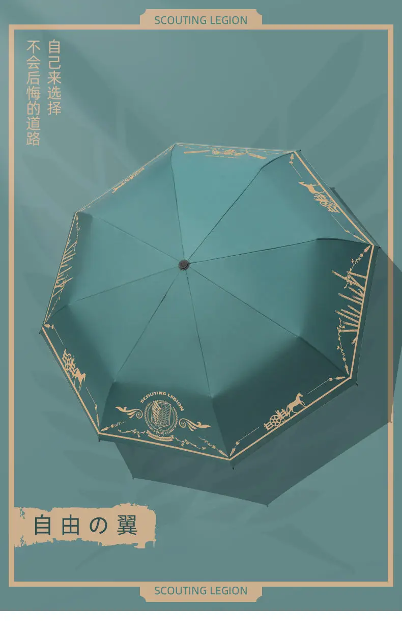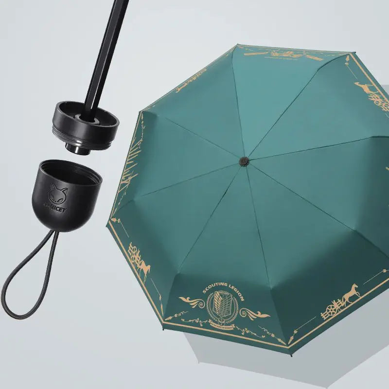Stay dry and stylish with this Attack on Titan vinyl umbrella — featuring a personalized cartoon sunshade design and a unique two-dimensional badge handle for true anime fans.