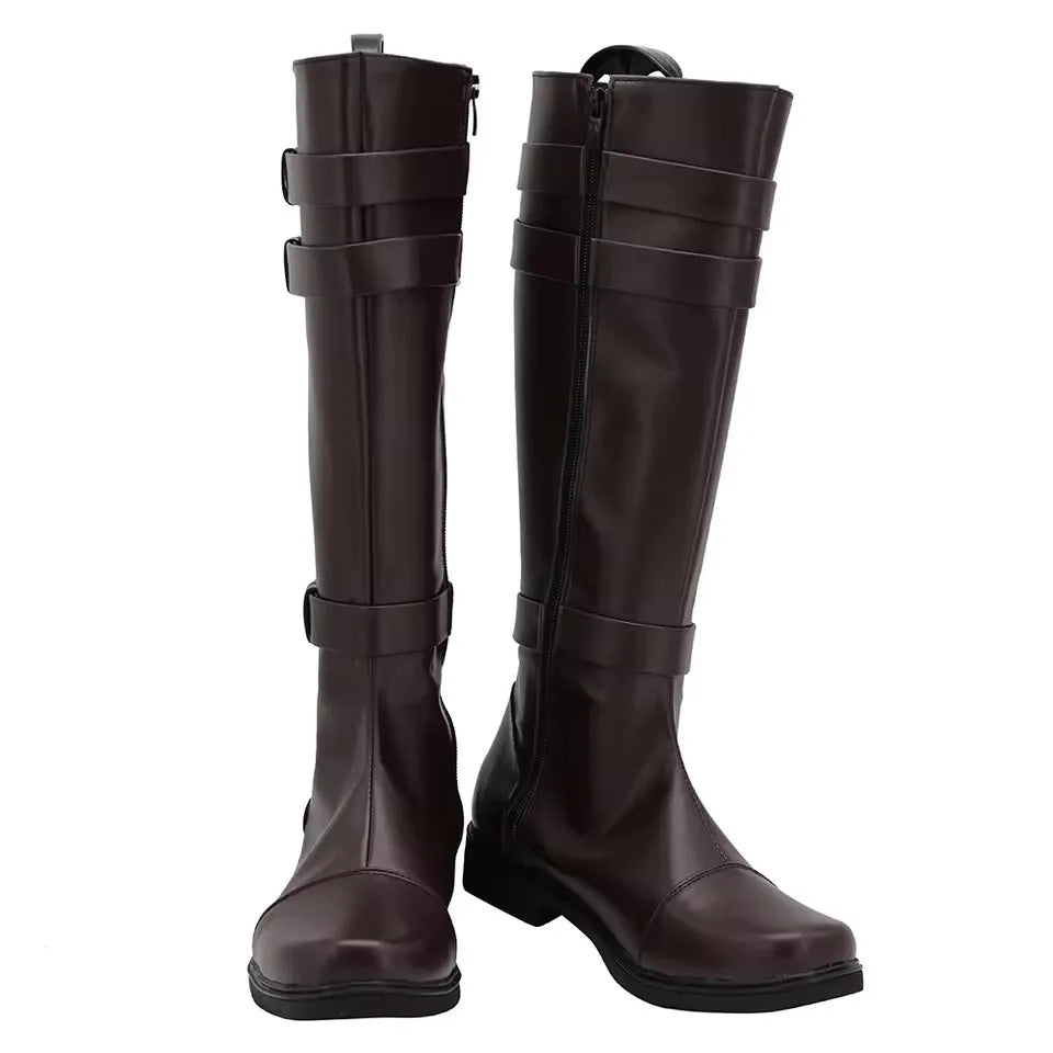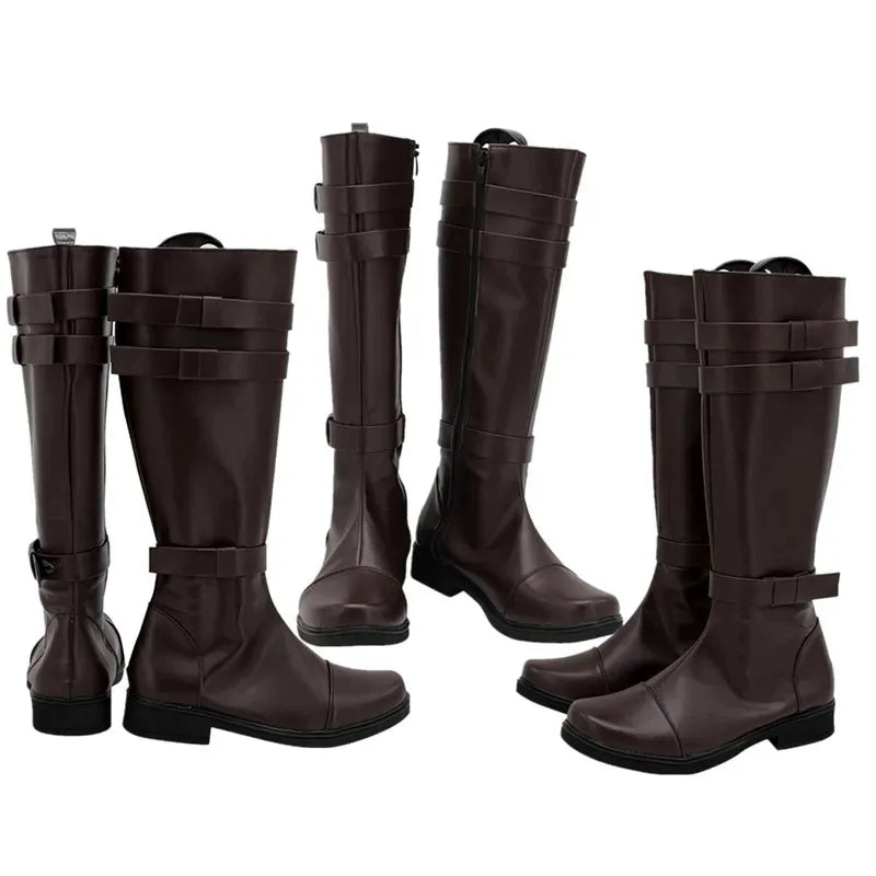 Classic knee-high design with buckles and rugged detail for a heroic look