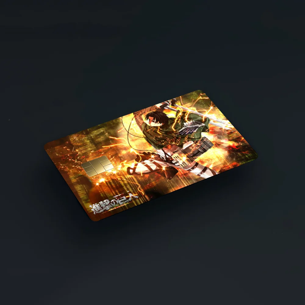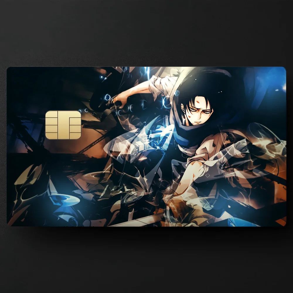 Show off your anime style with this Attack on Titan Levi Ackerman card sticker — a sleek, fashion-forward matte skin for your bank, credit, or debit card!