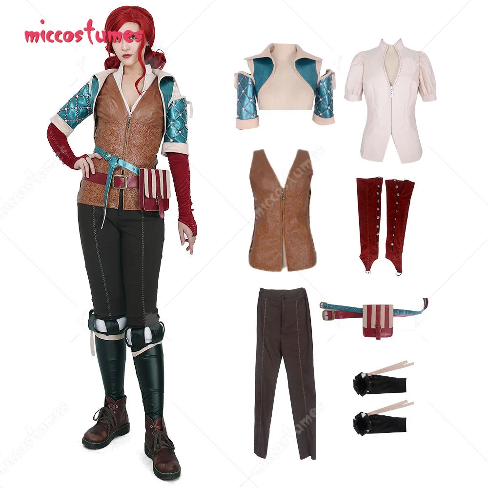 Step into the world of fantasy with this Women’s Hunt Triss cosplay costume by Miccostumes, featuring gloves, belts, and a waist bag — perfect for cosplay events or themed photoshoots with quick 24-hour shipping.