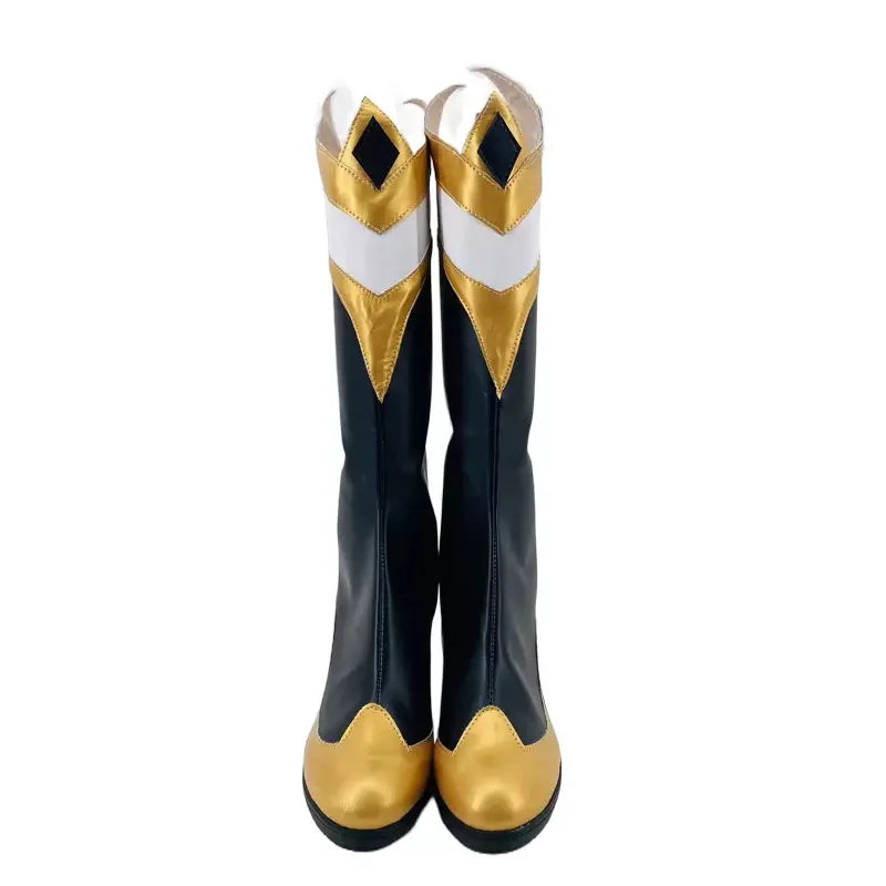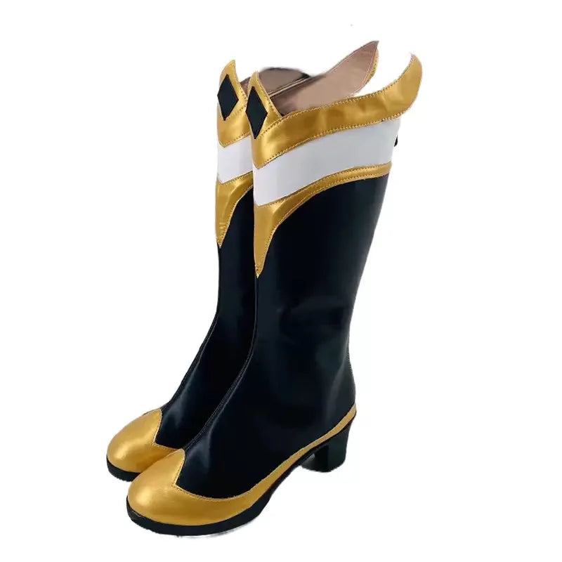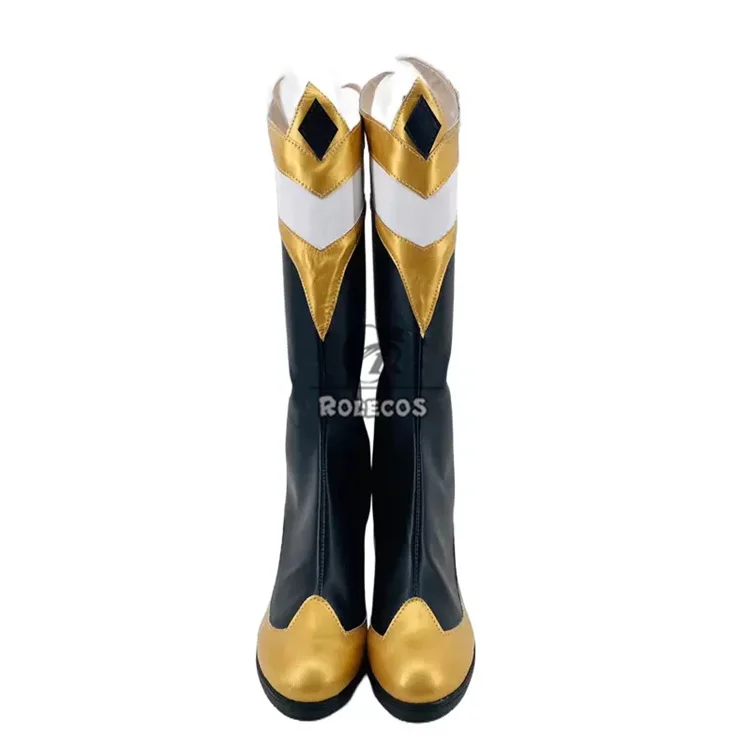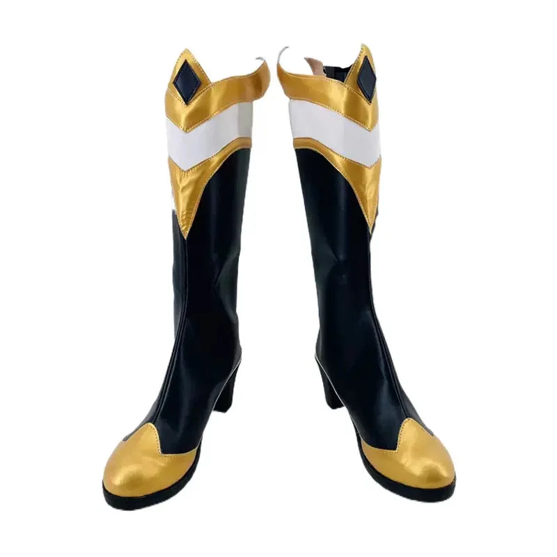 Step into the legend with these ROLECOS LOL Immortalized Legend Ahri cosplay boots, crafted in gold and black PU leather—perfect for Halloween parties and cosplay events.