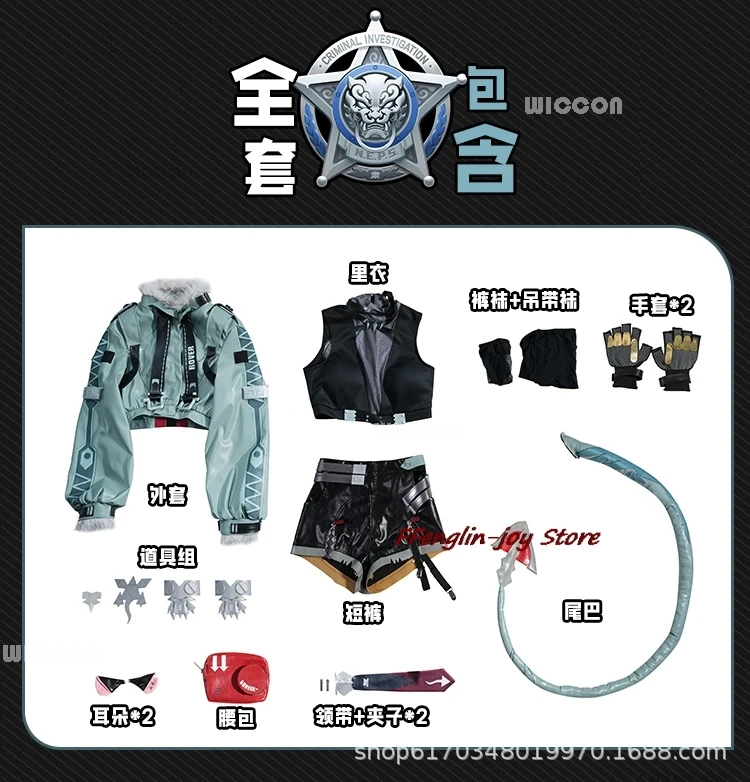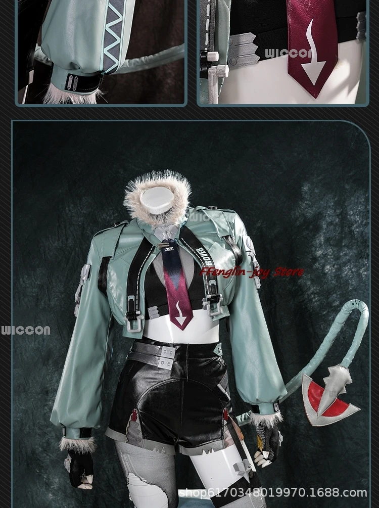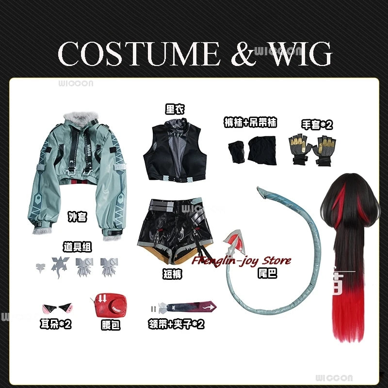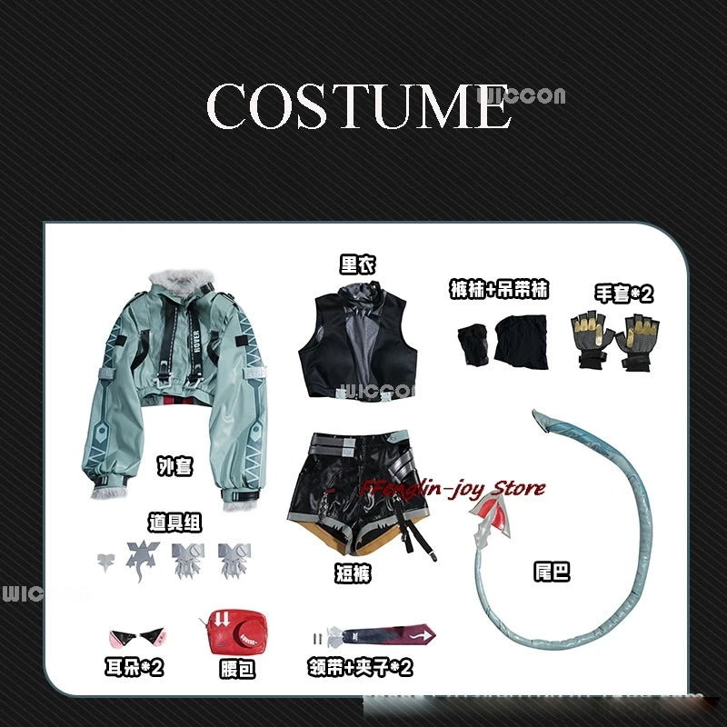 Bring Jane Doe from Zenless Zone Zero to life with this high-quality cosplay set, including wig, tail, ears, jacket, and uniform—perfect for Halloween parties and cosplay events for women.