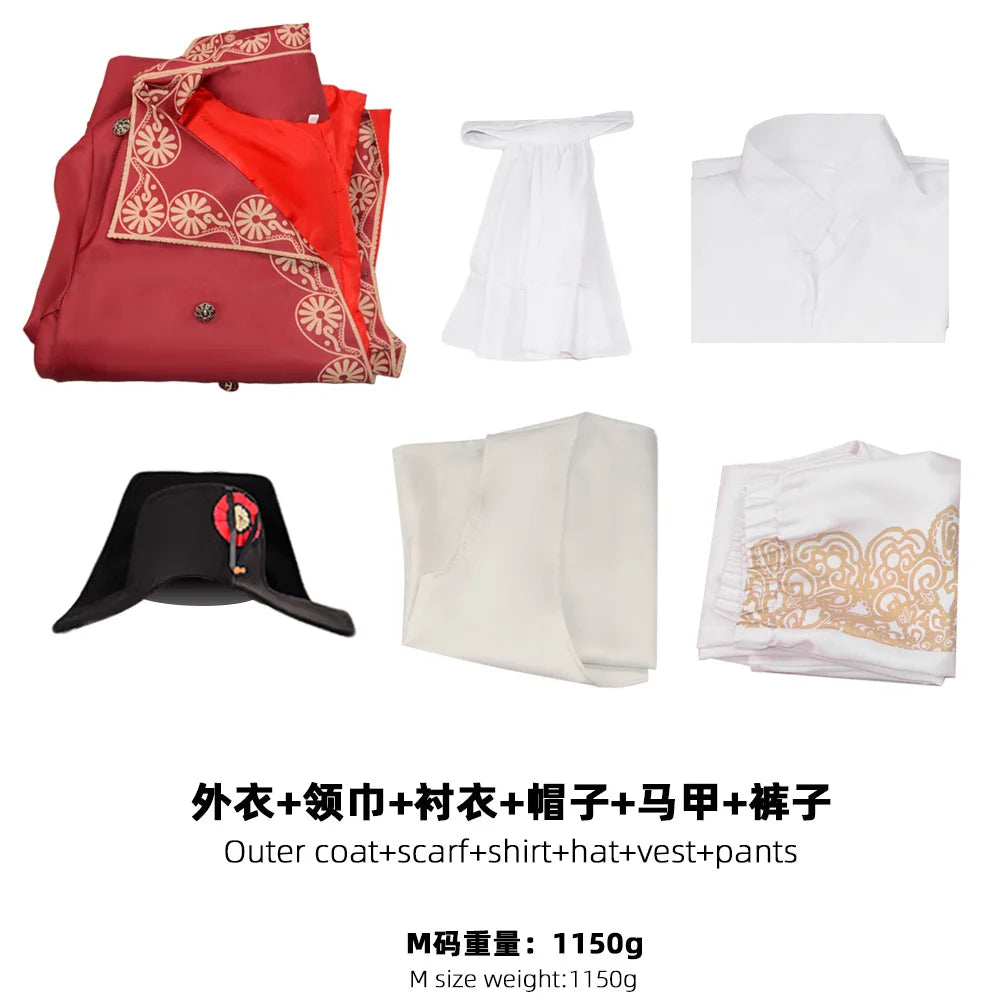 Command the battlefield with this authentic Napoleon Bonaparte cosplay costume, featuring a French Emperor military uniform with hat, coat, and pants—perfect for historical reenactments and cosplay events.