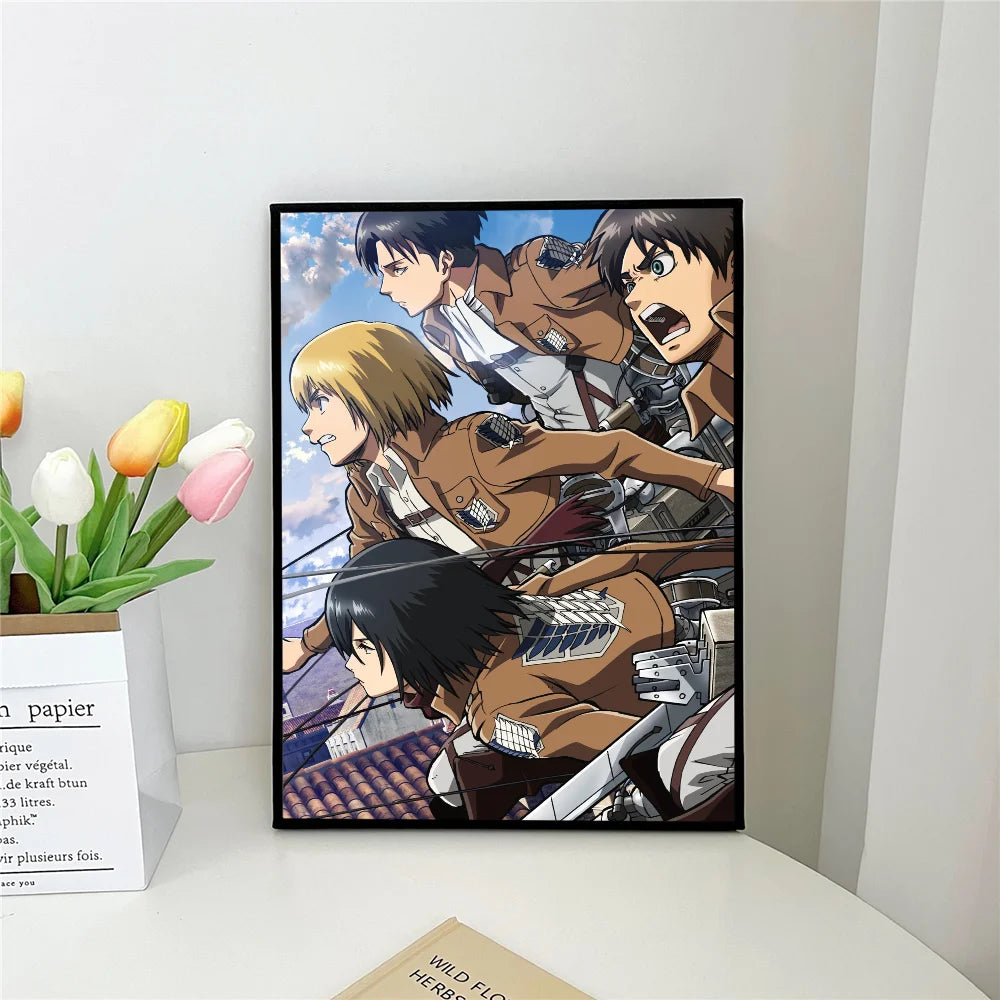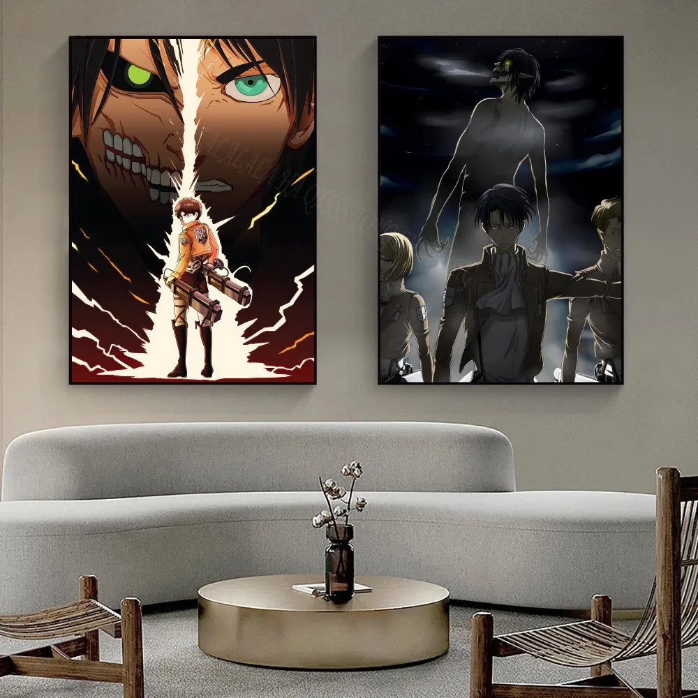 Decorate your space with this stylish Attack on Titan self-adhesive poster — a waterproof wall art piece perfect for bedrooms, coffee houses, bars, or anime-themed rooms.