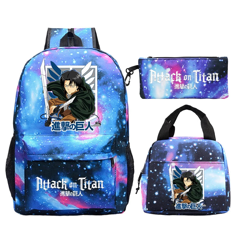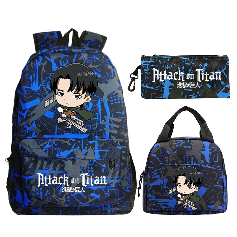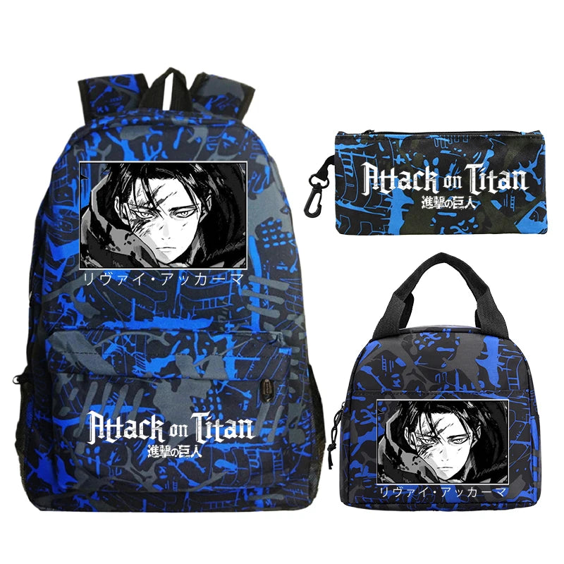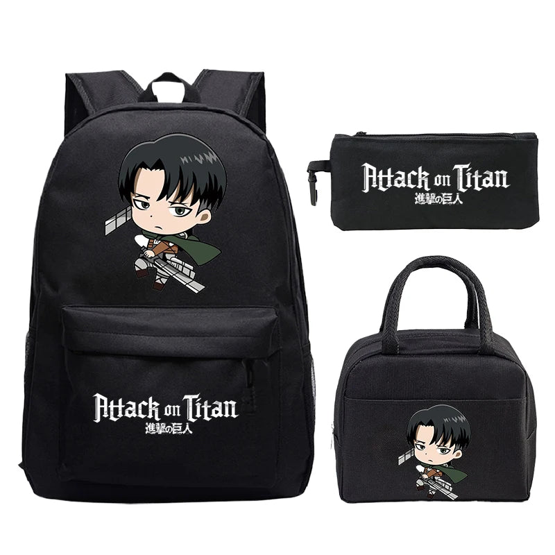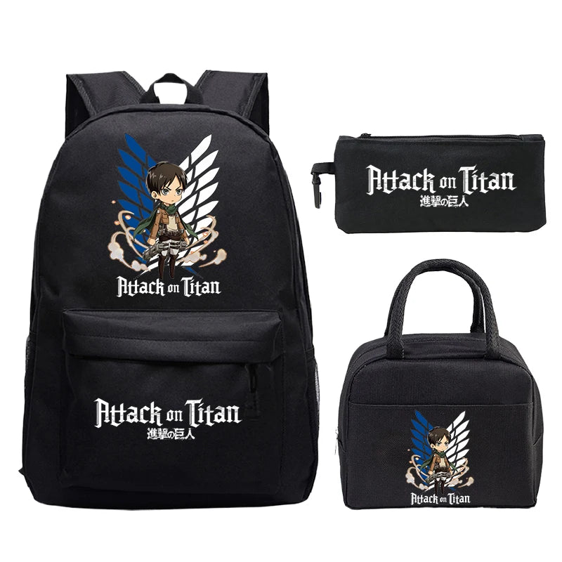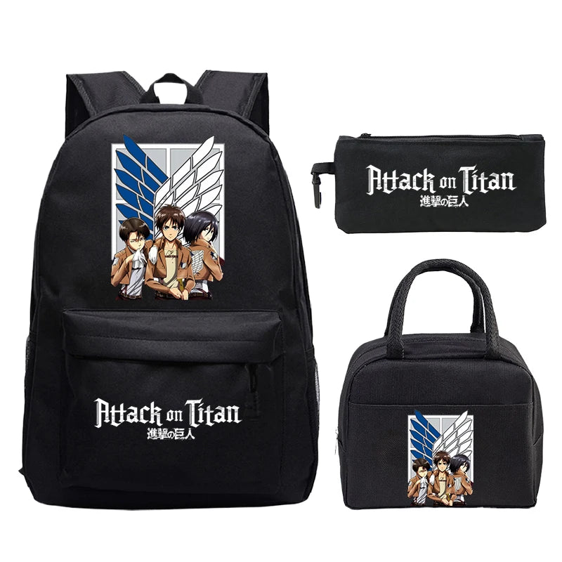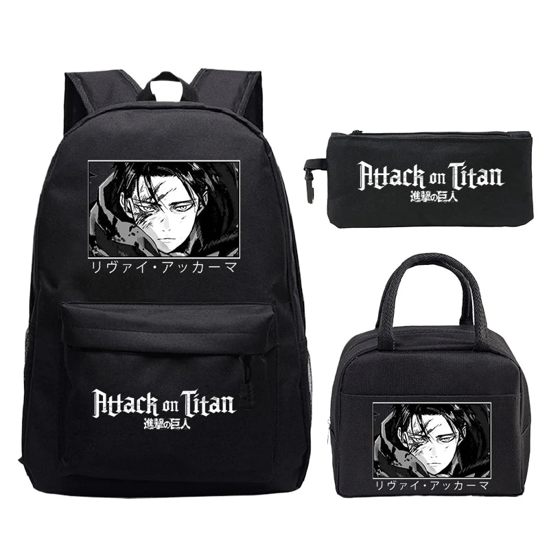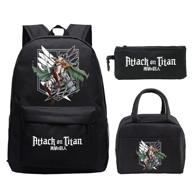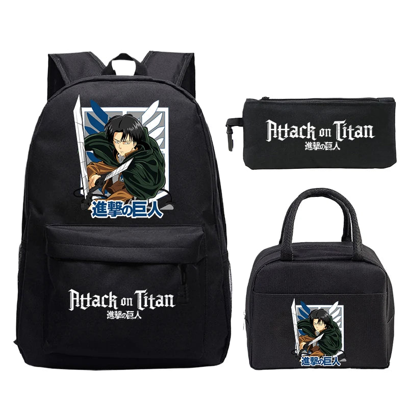 3pcs/set Attack on Titan Backpack Set – Eren & Levi School Bag with Lunch Bag & Pencil Case
