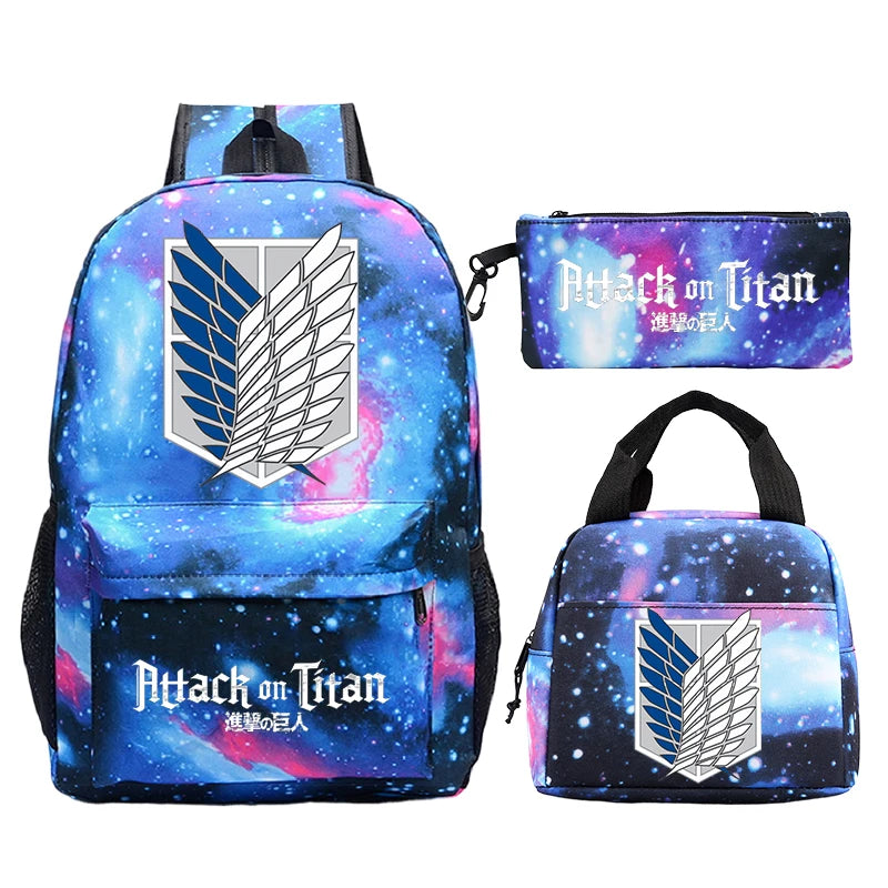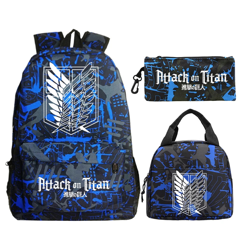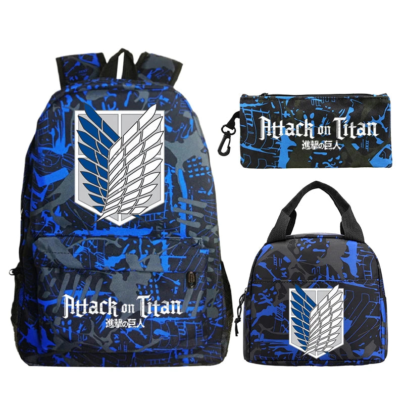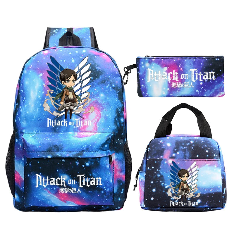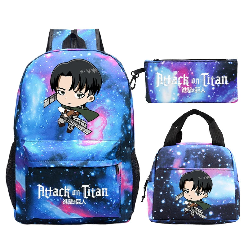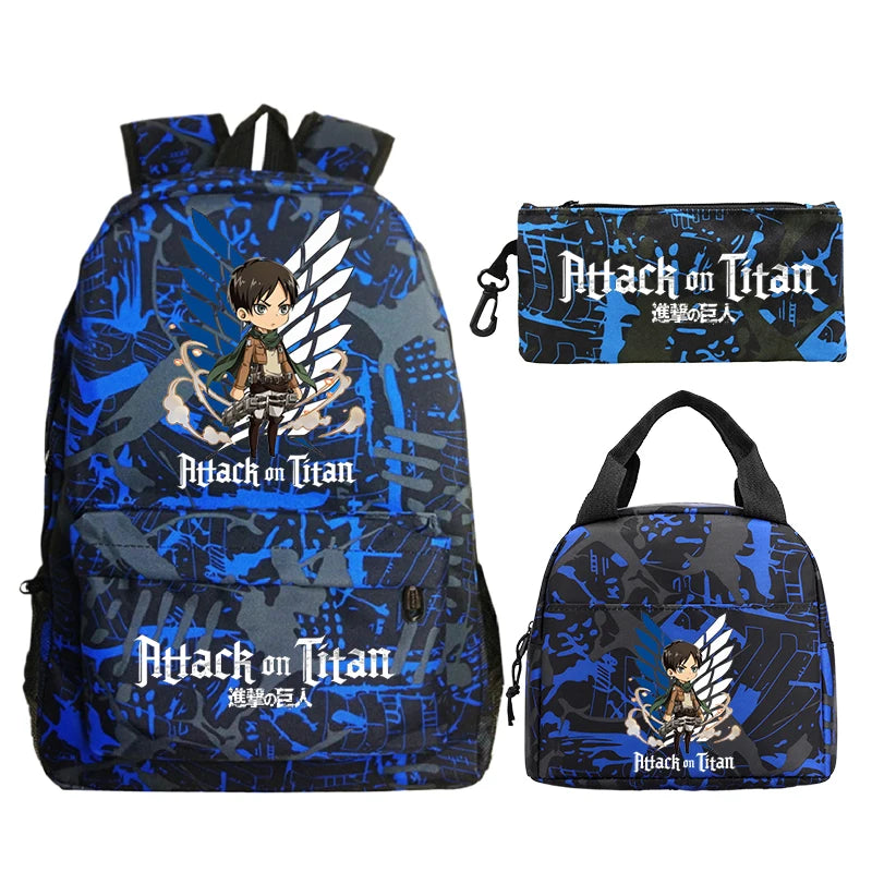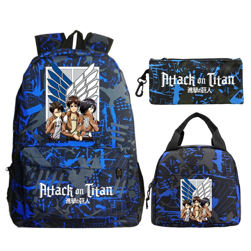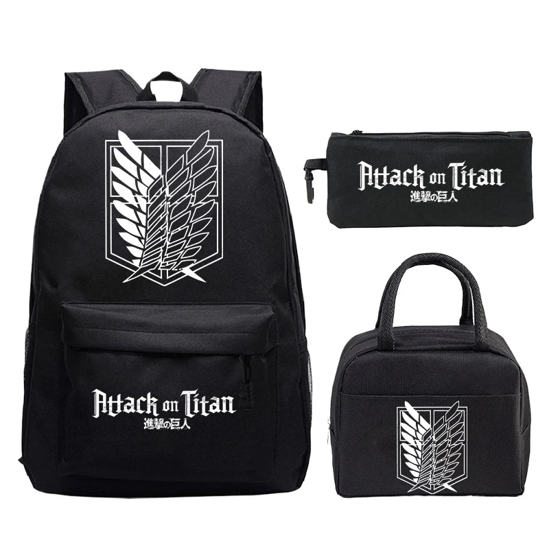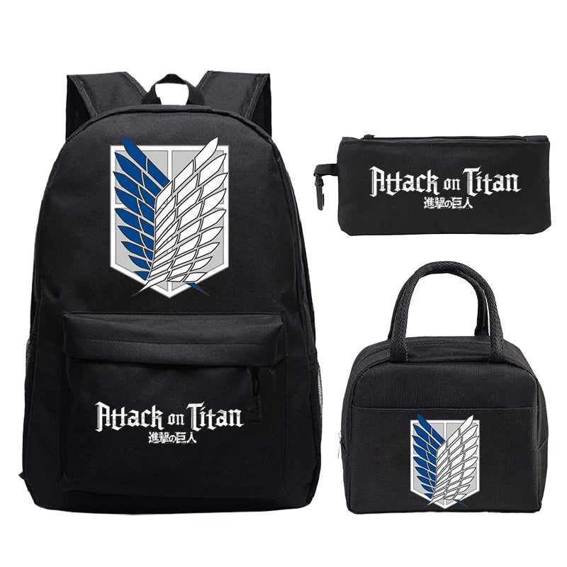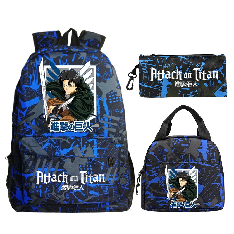 3pcs/set Attack on Titan Backpack Set – Eren & Levi School Bag with Lunch Bag & Pencil Case