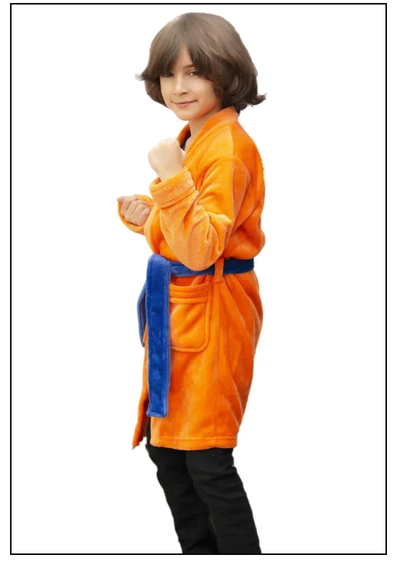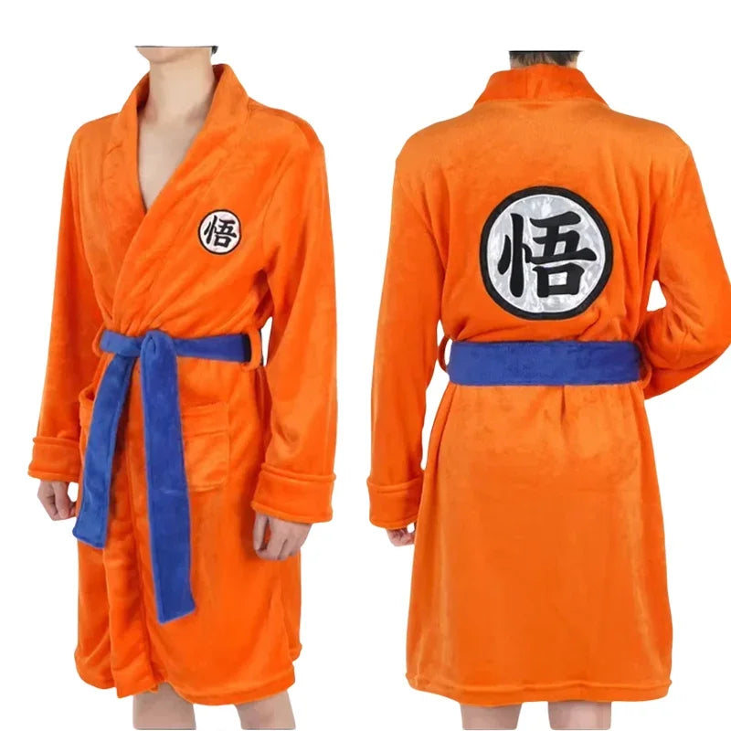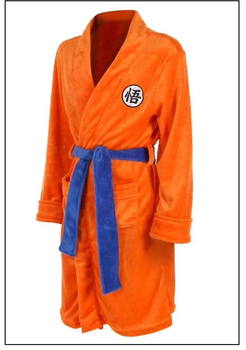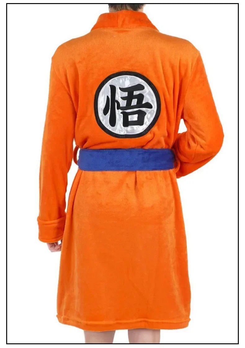 Relax in style with this cozy adult anime bathrobe inspired by Son Goku, perfect for men and women as sleepwear, pajamas, or casual loungewear.
