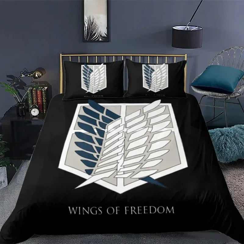 Anime Attack on Titan 3D Printed Bedding Set – Freedom Wings Duvet Cover for Boys & Kids