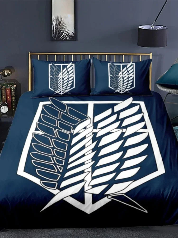 Transform any bedroom into a Scout Regiment stronghold with this 3D printed Attack on Titan bedding set — featuring the iconic Wings of Freedom design, perfect for young fans.