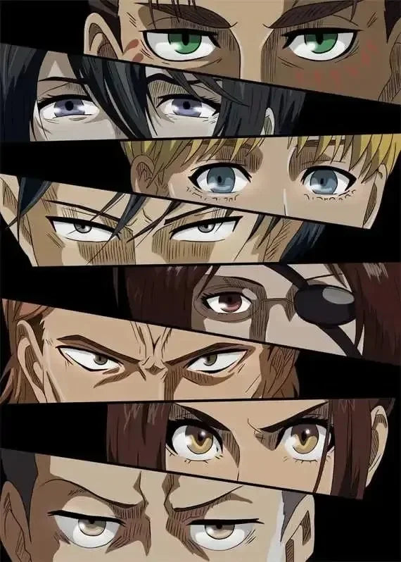 Highlight the intensity of your favorite characters with this anime eyes canvas poster — featuring Hunter x Hunter and Attack on Titan in a bold, aesthetic design for kawaii and manga-inspired rooms.