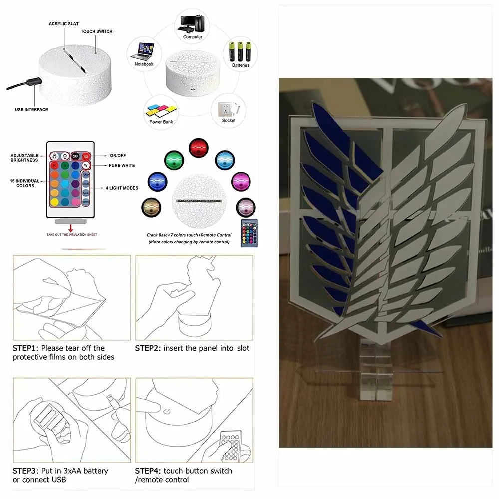 Attack on Titan 3D LED Lamp – 16-Color Anime Night Light