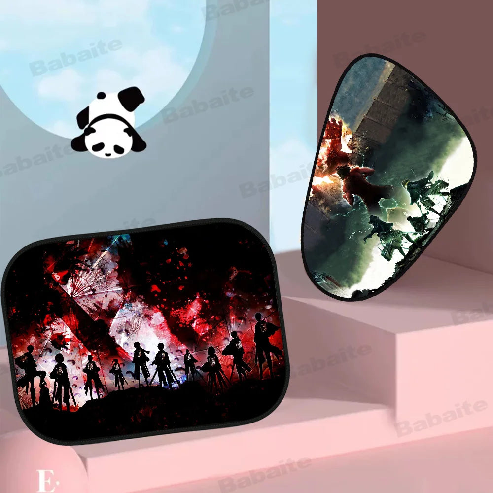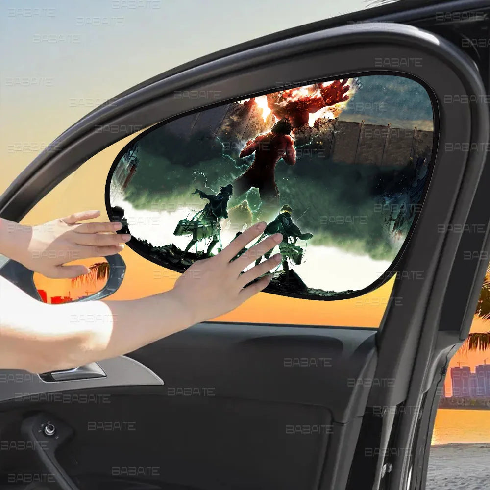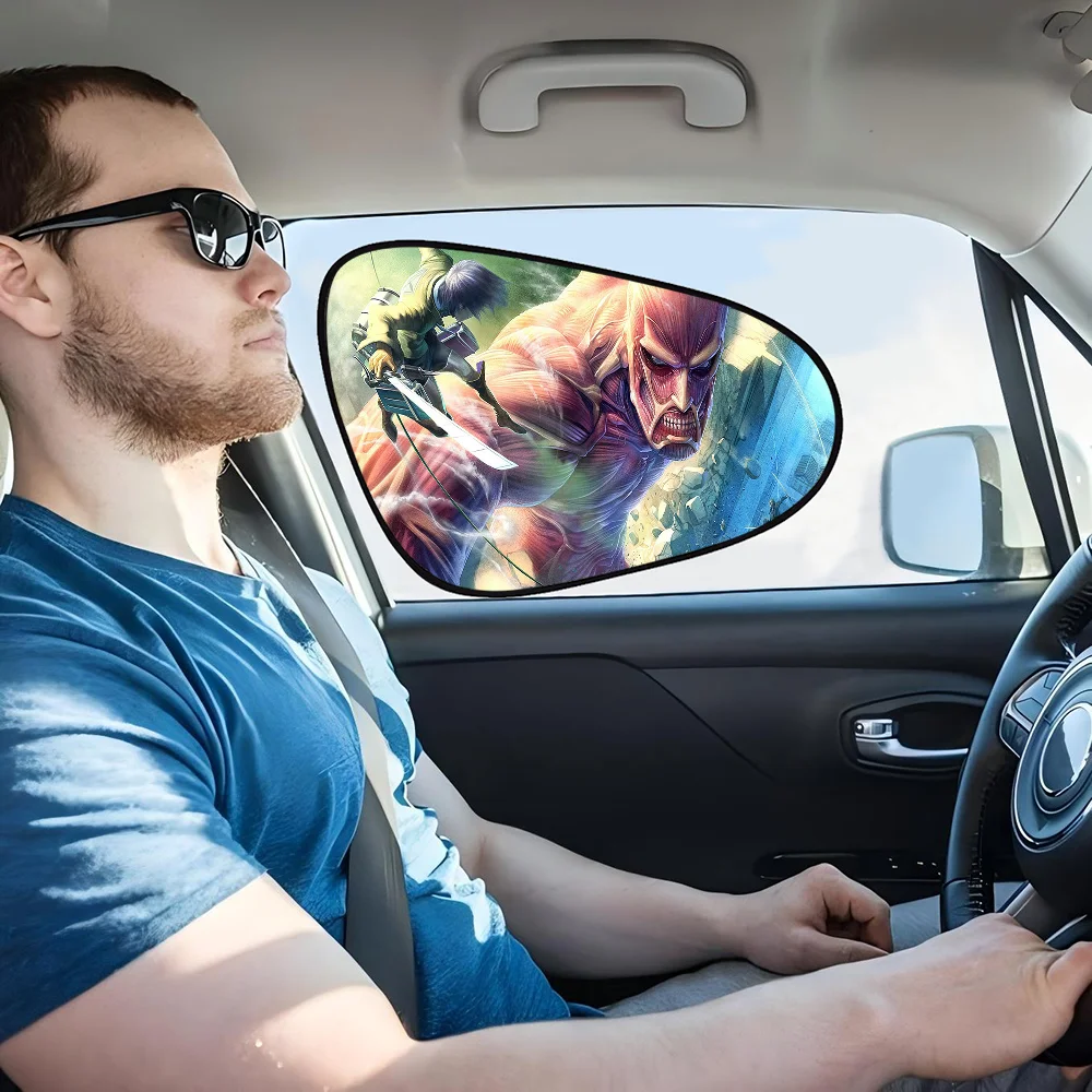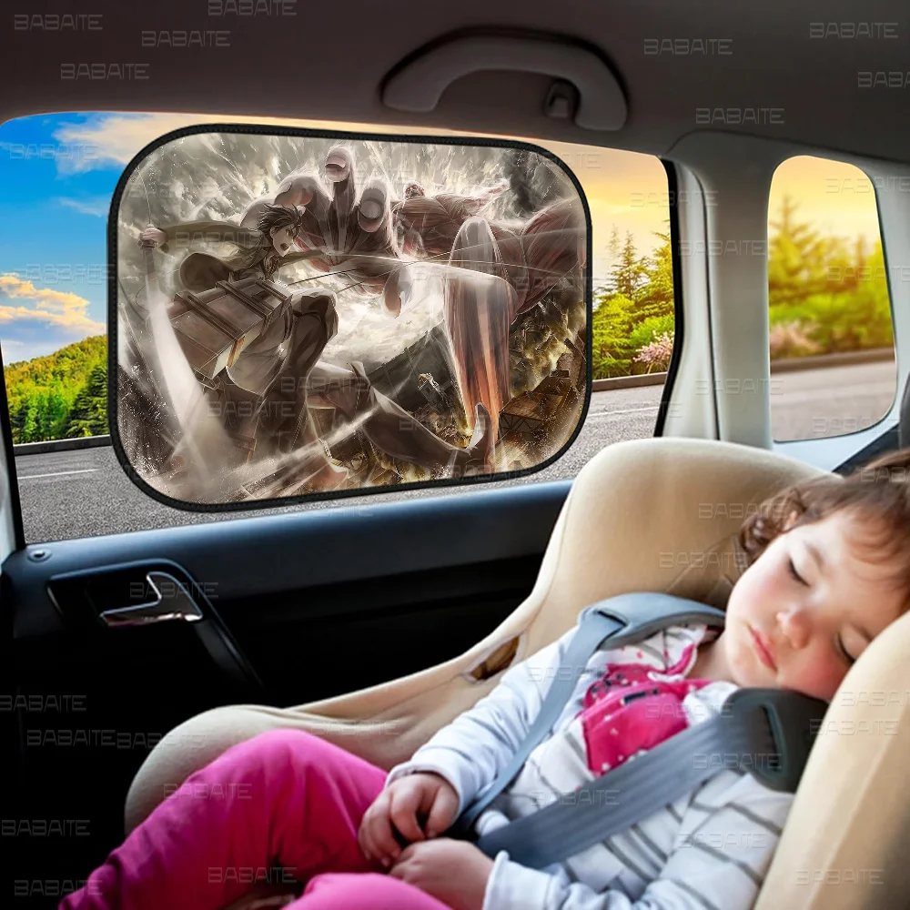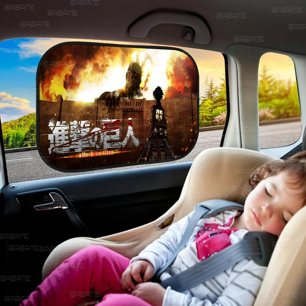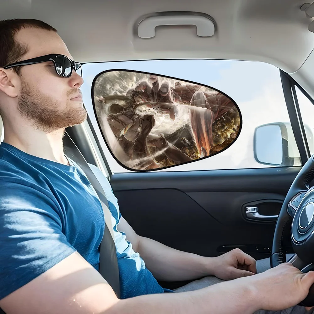 Protect your little ones with this Attack on Titan themed sun shade cover for car side windows — offering 99.9% UV protection and stylish anime design.