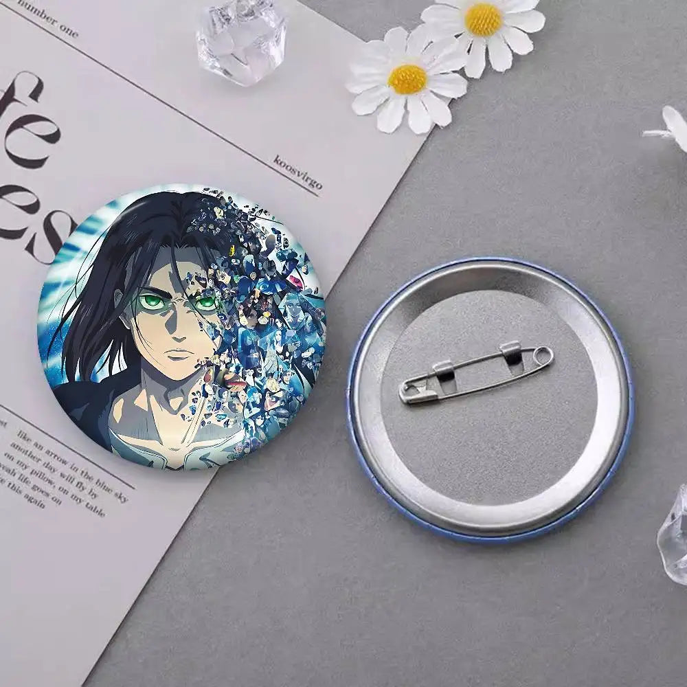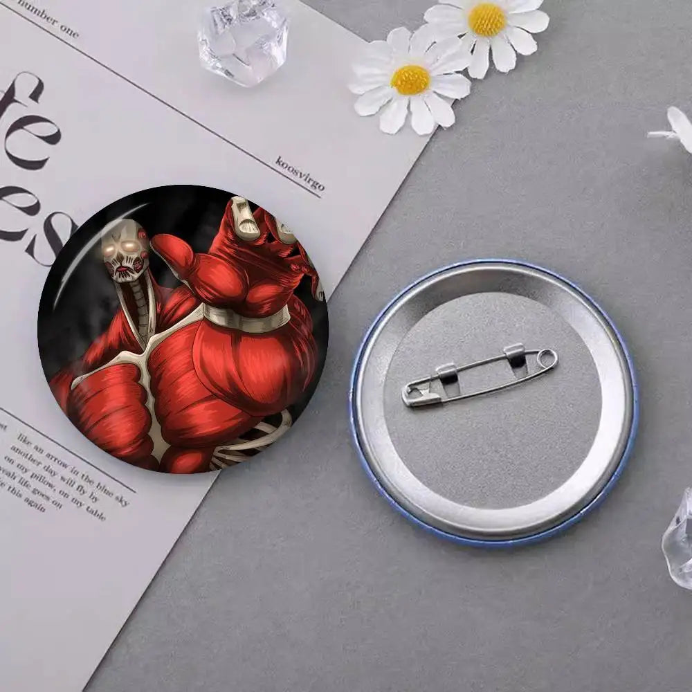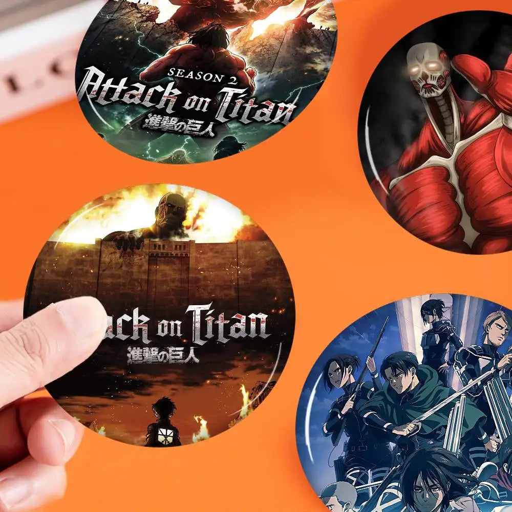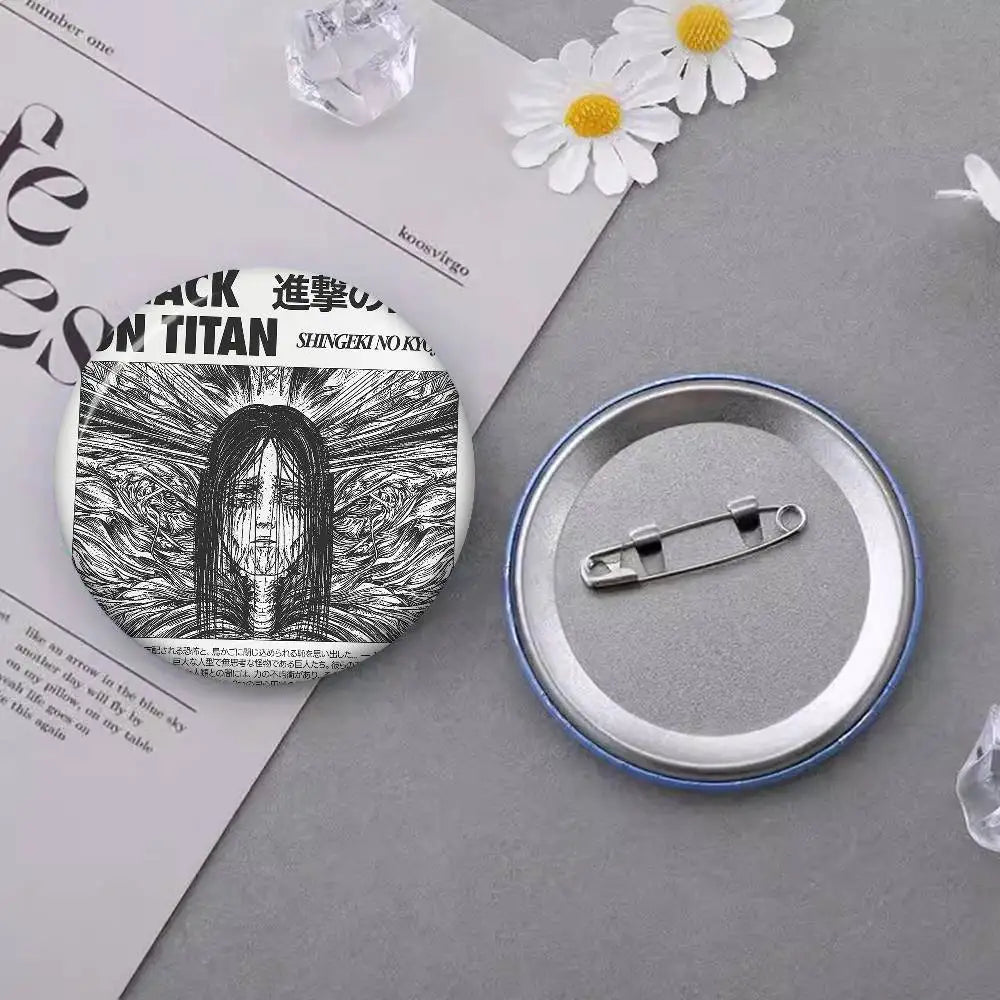 Add a playful twist to your Attack on Titan collection with this set of round, snap-in smiley face pins — perfect for backpacks, hats, and casual wear!