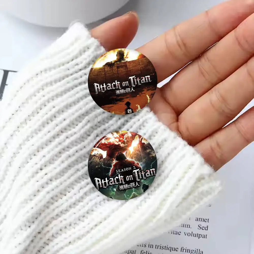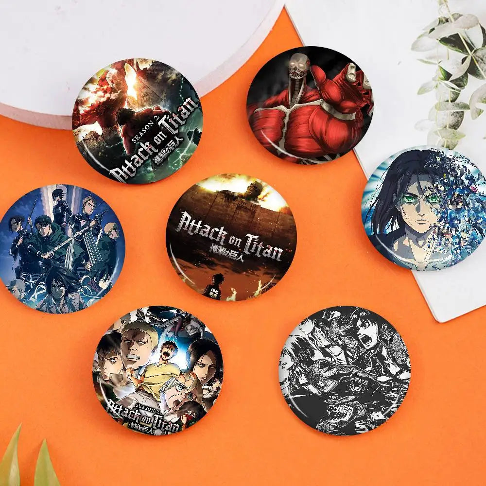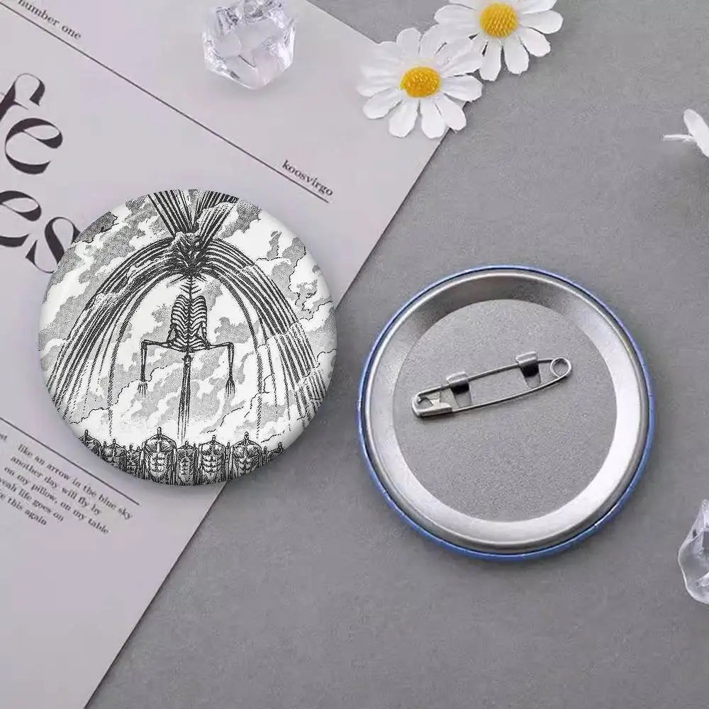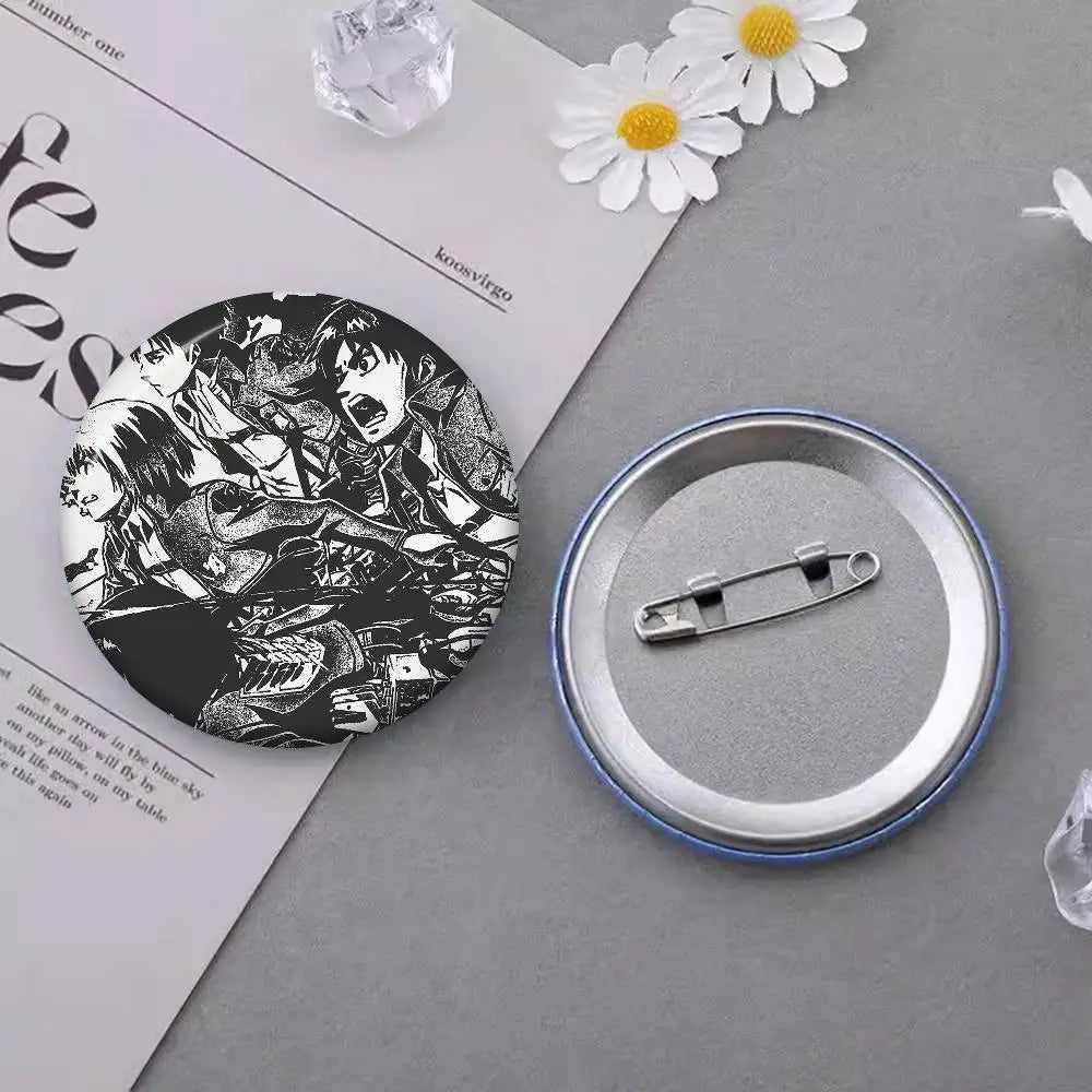 Add a playful twist to your Attack on Titan collection with this set of round, snap-in smiley face pins — perfect for backpacks, hats, and casual wear!
