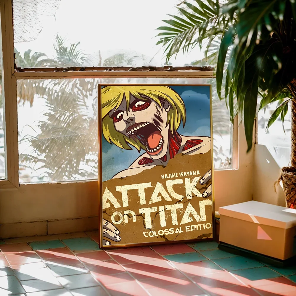 Attack on Titan Retro Kraft Paper Sticky Poster – DIY Wall Art for Room, Bar, or Café