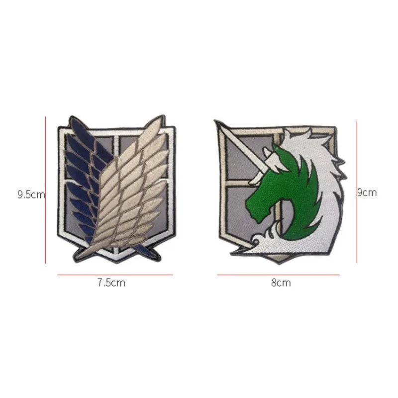 Show your allegiance with this detailed Attack on Titan Survey Corps Wings of Freedom embroidered patch, featuring hook-and-loop Velcro for easy attachment to clothing or cosplay gear.